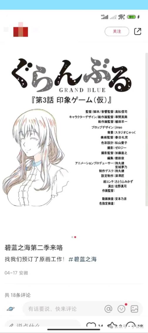 不过网络上有些人对此的讨论还在于它的消息来源,有网友注意到,《碧蓝之海》动画制作中的消息在一个月之前的小红书上就有人放出,发帖人看样子是国内的一家动画外包团队的成员。