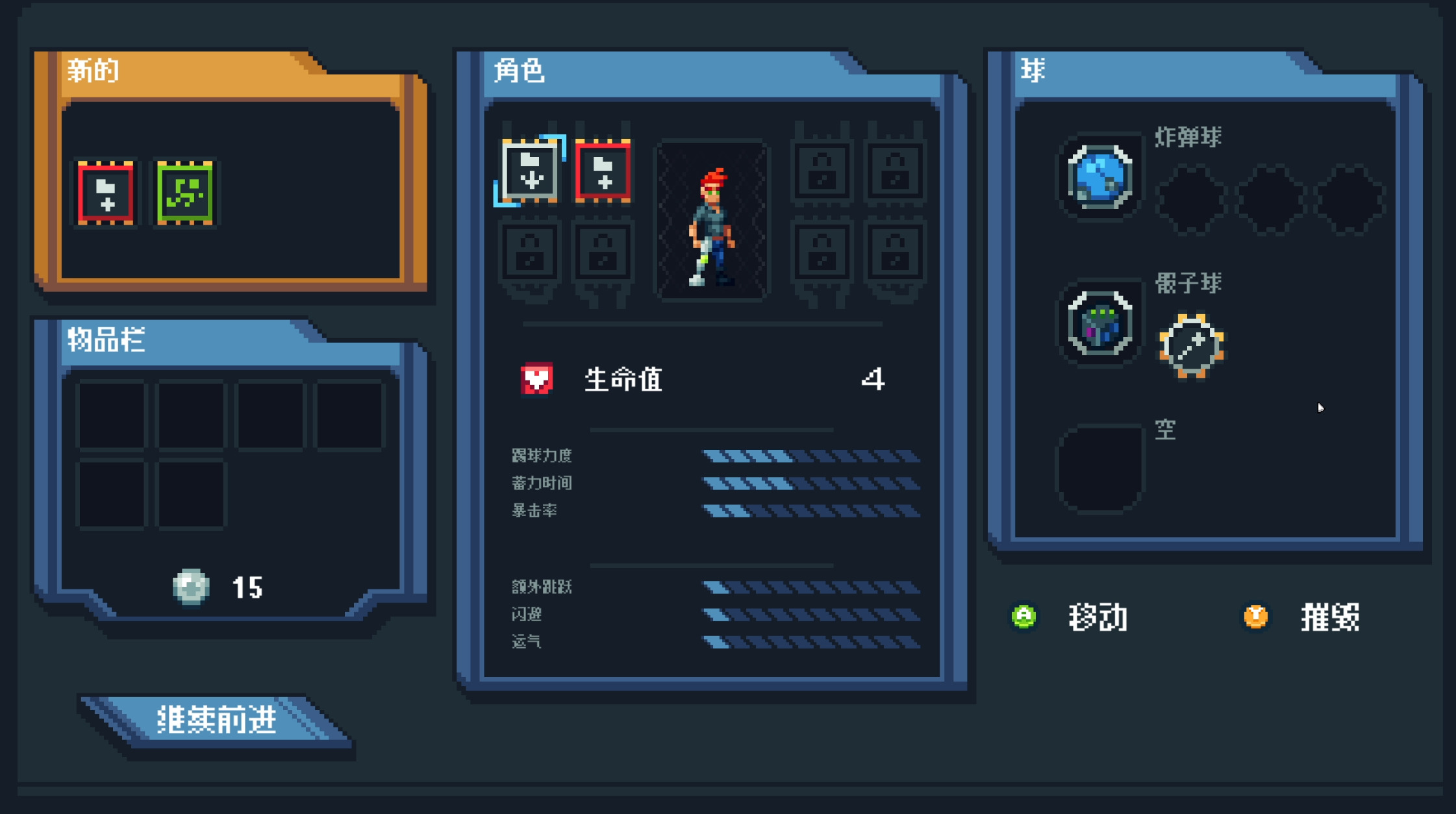 作为玩家,自然也不能缺少了提升的方法。首先,玩家就可以切换初始角色来获得不同的基础属性和默认足球。在冒险过程中,玩家会捡到许多的芯片,它们又分为了人物强化芯片和足球强化芯片。而不同的角色能够同时使用的芯片数量也是不同的,足球也是如此。通过获得两个品质和名字相同的芯片或足球,就可以提升物品的品级,并提供更加强大的效果。同时也有一些独特的物品不能够升级,但他们的初始效果就足够强力。