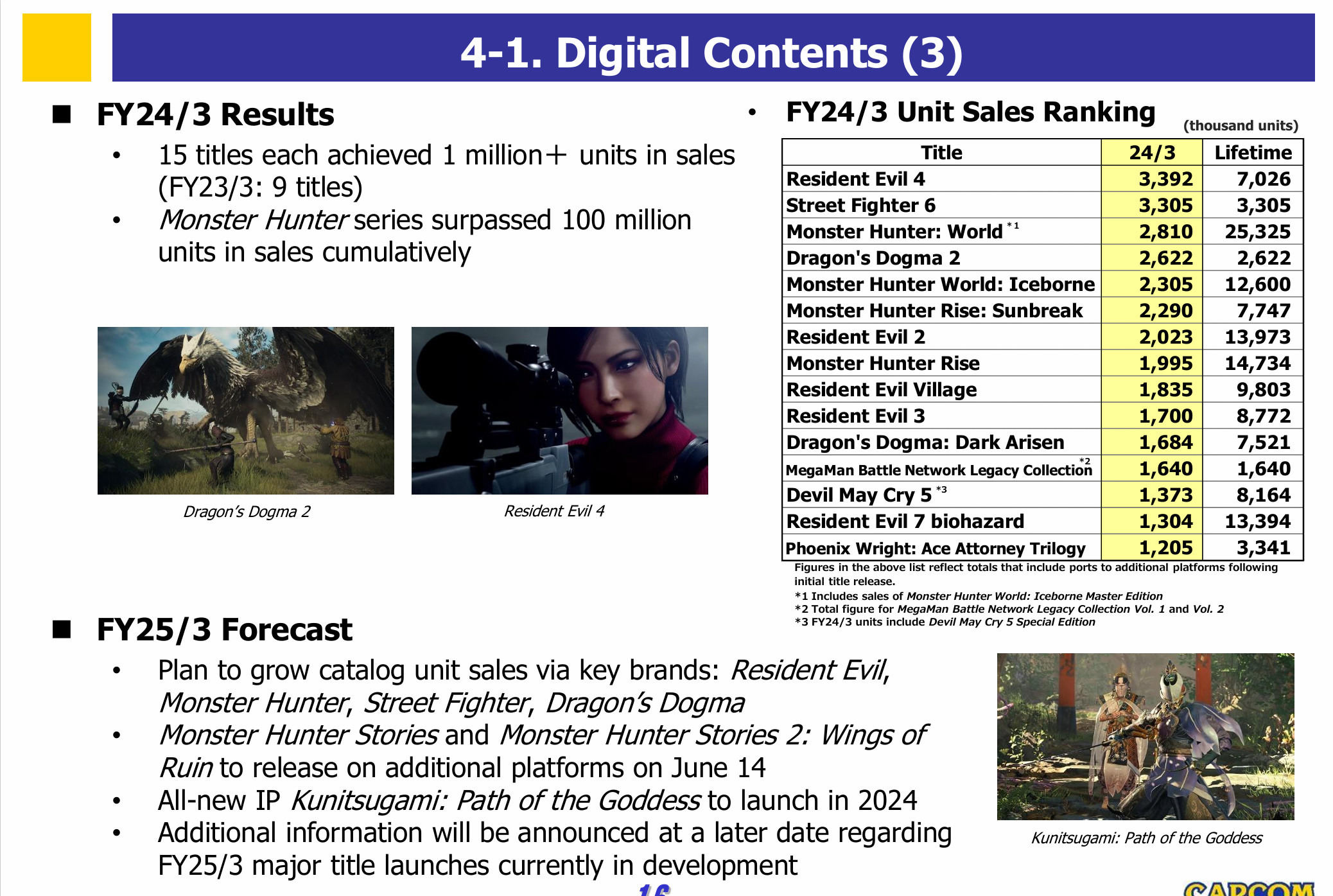 计划增长关键品牌老游戏销量:《生化危机》《怪物猎人》《街霸》《龙之信条》
