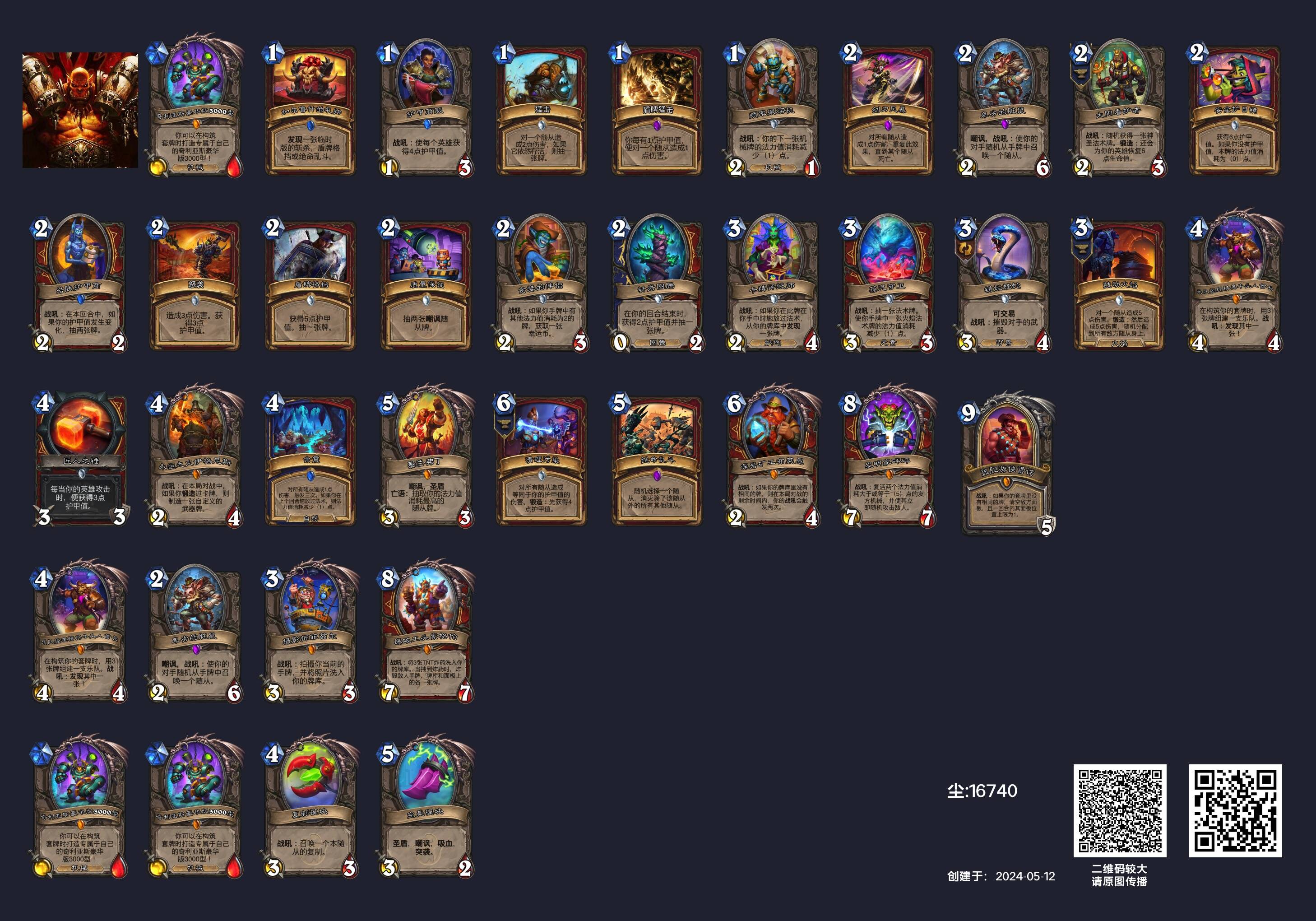 走下王座的宇宙战非常需要带得更薄,我碰到亚服有几个前二百区间的玩家比较喜欢携带混搭音叉来提高卡组的前中期混回合能力,只是我没有要到卡组……当然这只是一个典例,我认为一切薄化宇宙战卡组的尝试在当前环境都是正向的提升,其中最值得一提就是质量保证,在我看来这张牌应该是每套战士必带的单卡。按照(据我所知)最早携带质量保证并将爆破工头索格伦放在牛头人乐队里的季岁的说法,使用质量保证-泰兰·弗丁的检索流的原因是和其他大水漫灌式的抽牌相比,检索流可以在牌库很厚的情况下过到关键牌,牌库厚就意味着不容易被对面炸,按照季岁自己的说法是“内战除非我铜须在手上否则对面的图腾我都不解的,就算我没工头对面6张疲劳我都不一定输”。而在面对术士时,质量保证对于奇利亚斯豪华版3000型的稳定滤抽(要么直接抽到奇利亚斯要么抽到泰兰·弗丁然后检索到奇利亚斯)也能提高奇利亚斯加砰砰的概率,从而提升我们闯关成功的概率。