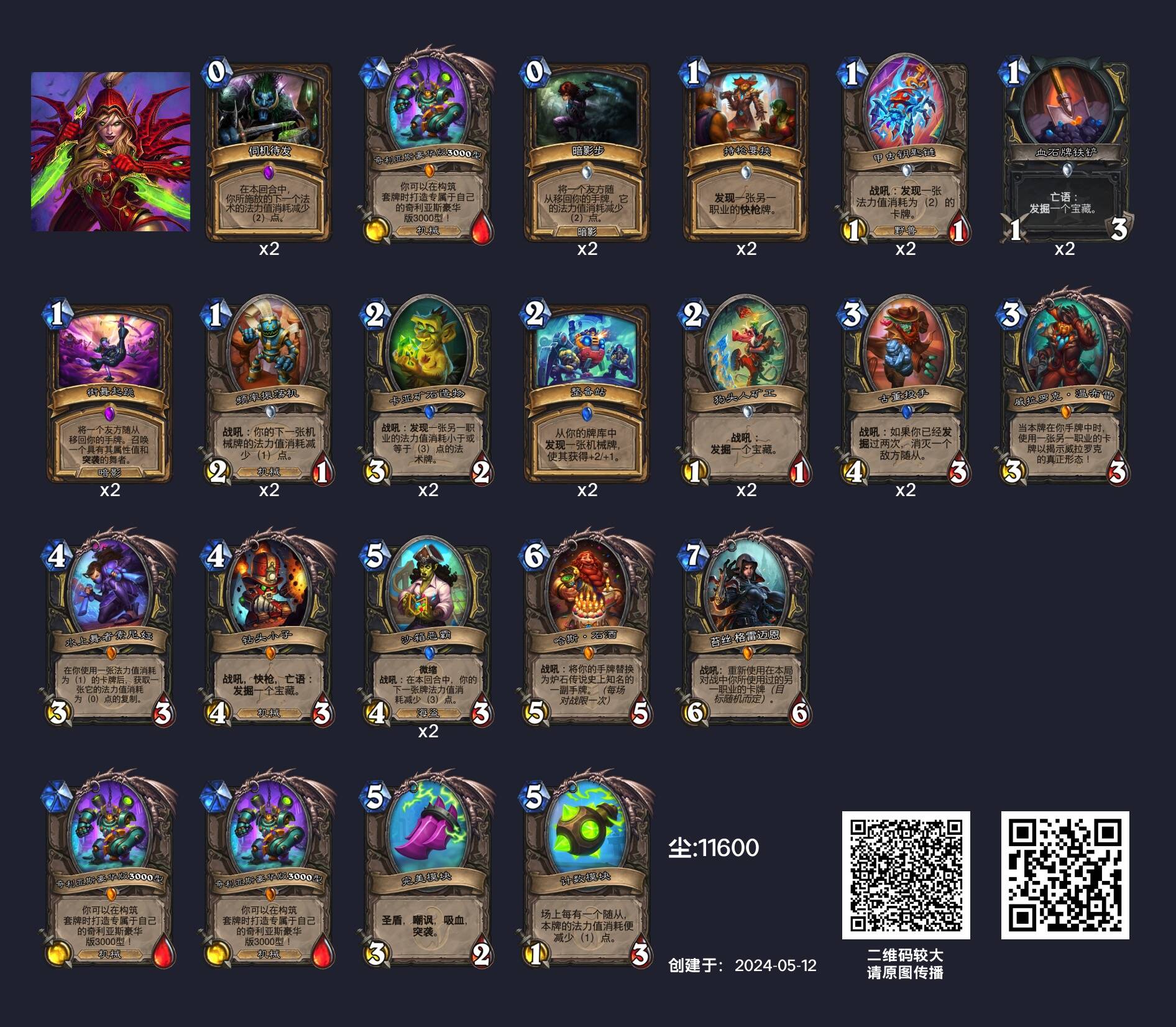 +奇迹推销员*2、弗林特·枪臂、贪婪的伴侣*2、异教低阶牧师*2、火车王里诺艾
