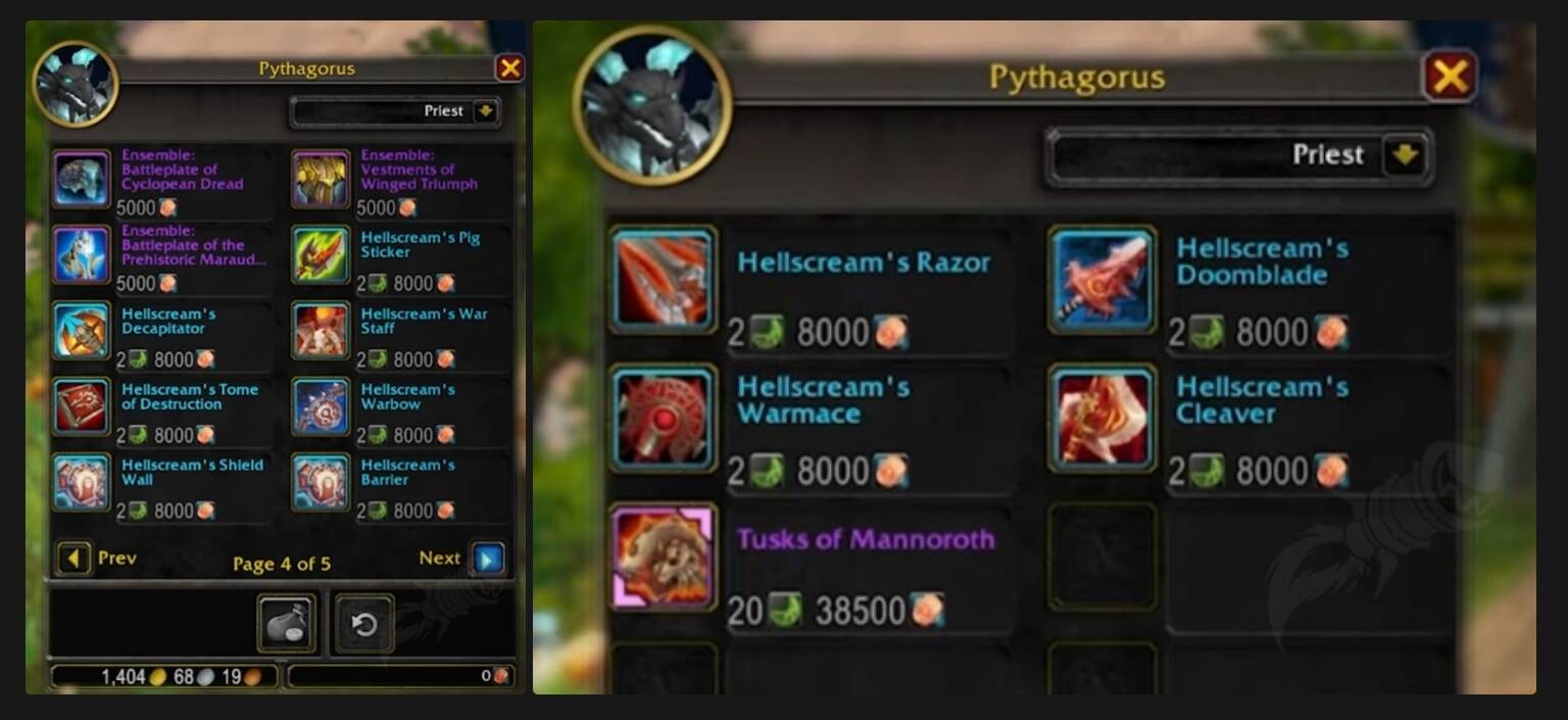 好消息,德拉诺版本绝版的地狱咆哮传家宝复刻了!在幻境新生:潘达利亚之谜期间,玩家击败围攻奥格瑞玛的最终BOSS地狱咆哮即可获得兑换代币,使用青铜和传家宝代币可以兑换全套的地狱咆哮传家宝武器和大家心心念念的獠牙肩。