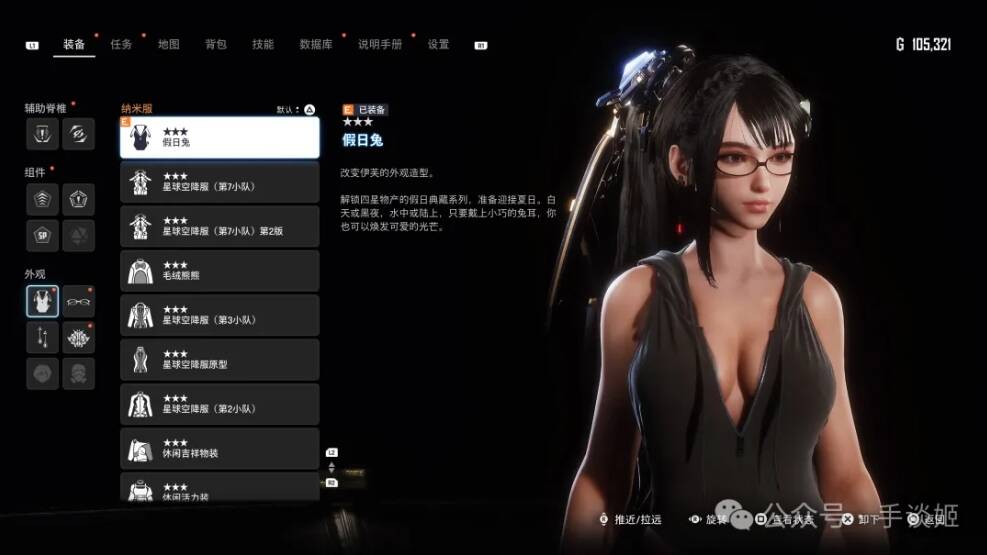 值得一提的是,除了服装之外玩家还可以给伊芙佩戴眼镜、耳环,以及更换发型发色,一些人不太喜欢初始的锅盖头发型,觉得呆呆的,这点在游戏前中期就可以修改了,个人猜测这是不是在体现角色逐渐有了自己的个性,愿意往这方面想。另外游戏项目早期时角色脸部的雀斑感觉并没有这么重,这方面给人的感觉就有点往西方审美靠拢了。