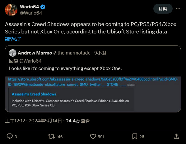 这意味着游戏将仅面向 PC、PS5 和 Xbox Series X|S 推出。这是自 2013 年以来,《刺客信条》新作首次出现无法在这些主机上运行的情况。去年的《刺客信条:幻景》就登陆了除任天堂 Switch 以外的所有平台。业内人士 Shinobi602 确认了不会登陆 PS4 的消息。