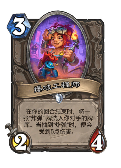 在你的回合结束时,将一张“炸弹”洗入你对手的牌库。当抽到“炸弹”,便会受到5点伤害。