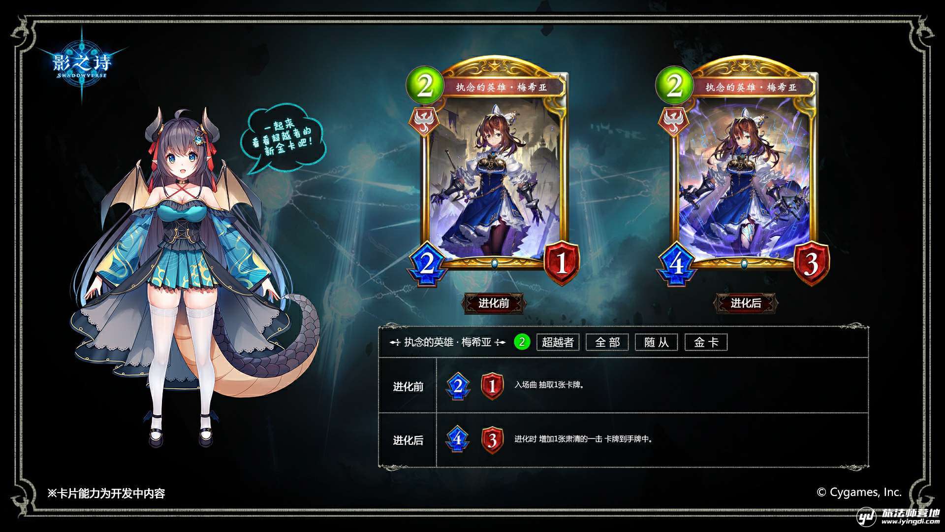 如果指定的是自己的执念的英雄·梅西亚,则会使其获得+X/+0与疾驰效果。X为「这场对战中,自己的随从进化的次数」。