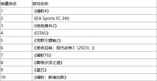 虽然没有什么新作,但《辐射4》又再次因为降价和亚马逊 Prime 真人剧集的爆火再次获得了一波热度。游戏的 PC 版占《辐射4》该月销量的一半以上。和英国类似,多款《辐射》系列游戏进入前 10 名,并且《辐射3》排名第 14 位。