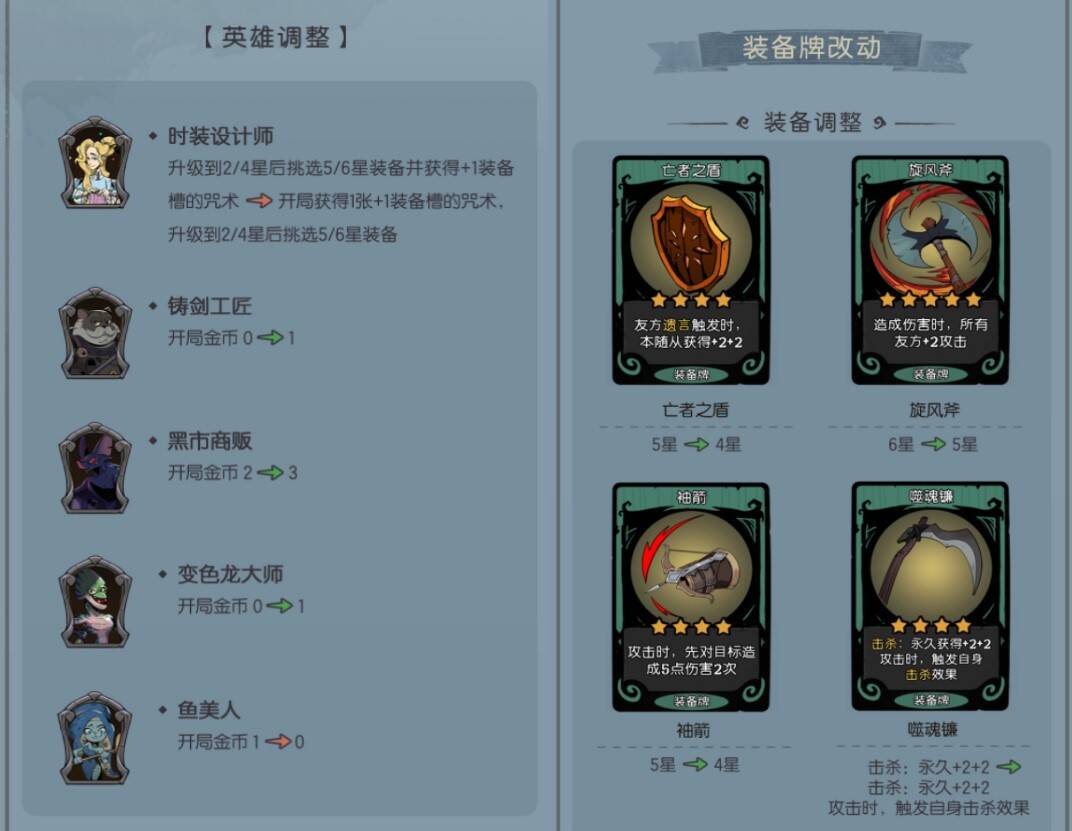 平衡调整,随从英雄咒术装备更新