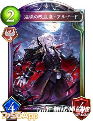 进入战场时,如果X为3以上,则会增加1张鲜血之牙卡片到手牌中。X为「包含该卡片在内,本场对战中自己已进入战场的连环的吸血鬼·亚瑞札特的数量」。