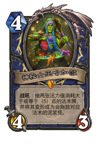 新版哈加莎的设计也由来已久,Cora印象里它一开始是给DJ法力风暴的,后来考虑到沙德沃克的配合又给了哈加莎(回归萨满),其中还又经历了抽变两张任意法术、变所有手牌法术等版本。