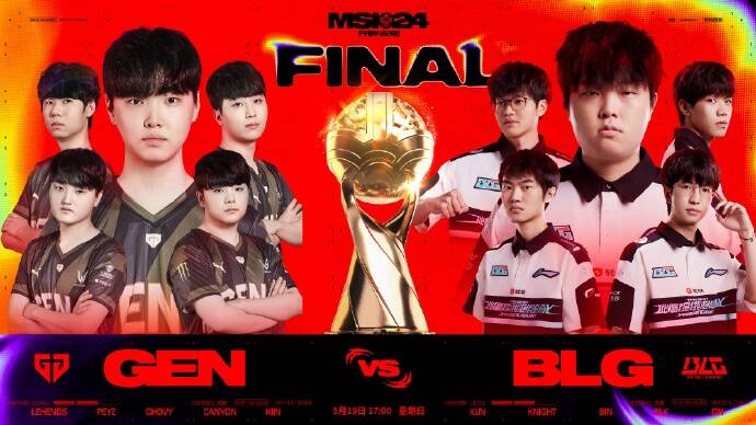今天17:00,《英雄联盟》2024季中冠军赛(MSI)冠亚军决赛将正式打响,由中国LPL赛区BLG战队迎战韩国LCK赛区GEN战队。