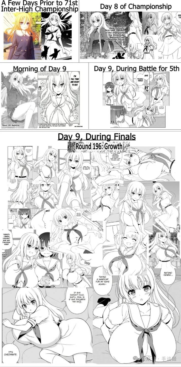 总之,《天才麻将少女》中一些角色的欧派确实是越来越大了。我们也可以提出一些自己的猜测,首先小林立自己在博客中说过,自己是喜欢画胸部的,是个人爱好。