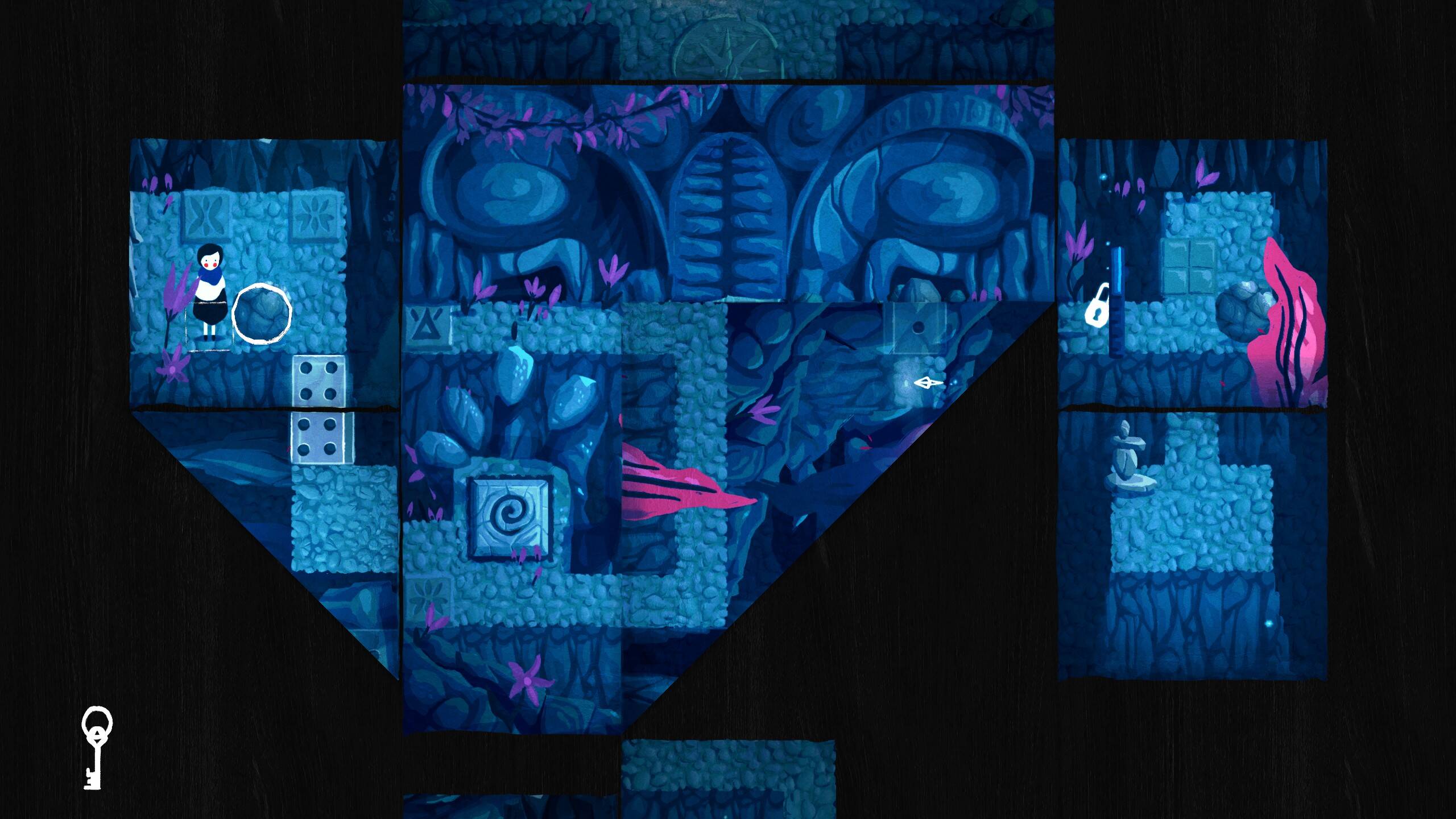 石头的好处在于和其他系统结合很紧密,你可以推开挡路的,但也你需要用它压住开关,石头的难点在于你无论向前或者向后推,都必须要至少留一格的空间,你也可以和石头交换位置,所以利用各种设施灵活的搬运石头是《纸间迷迹》必备的技术,当然这一点十分的推箱子既视感。