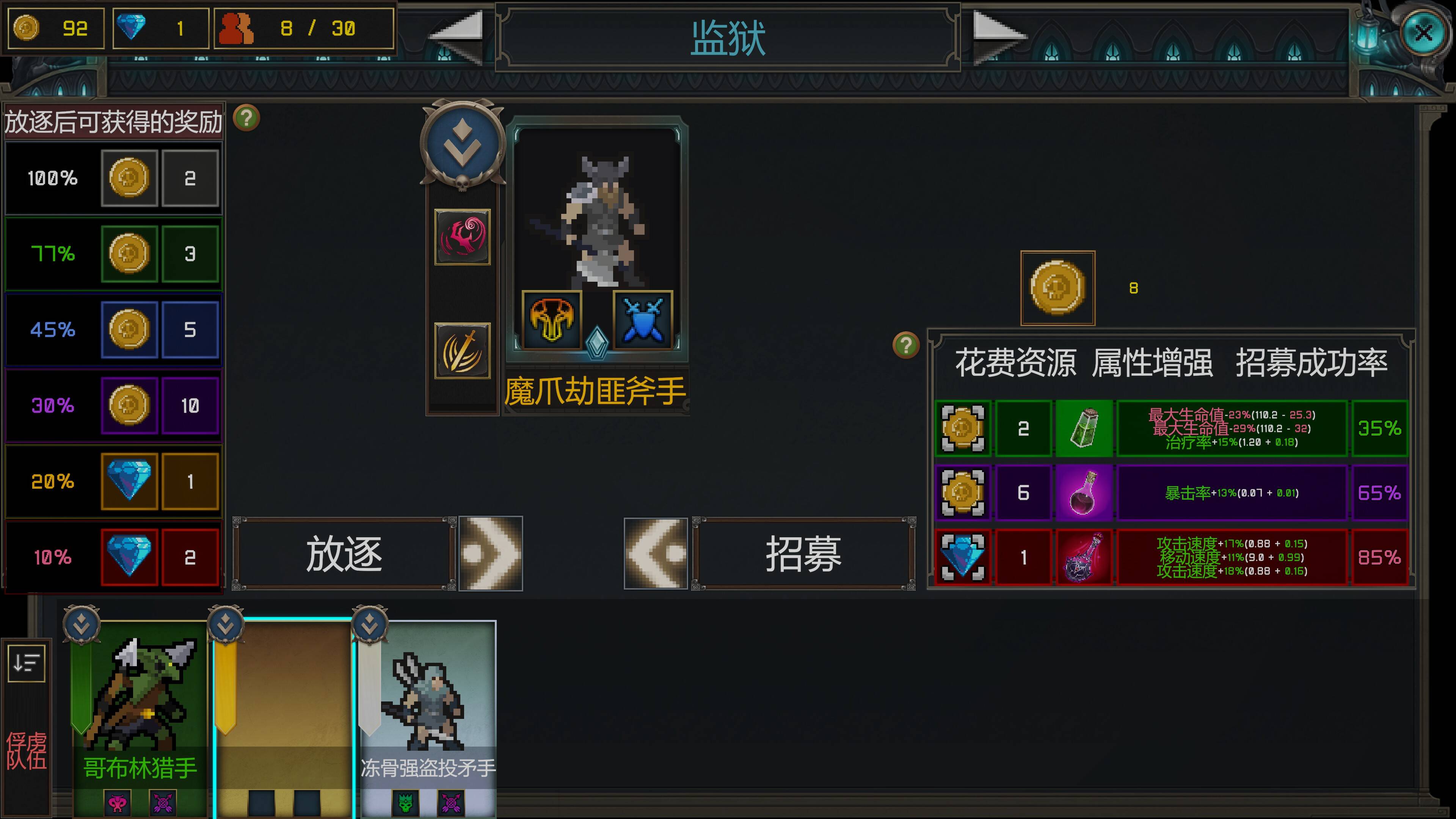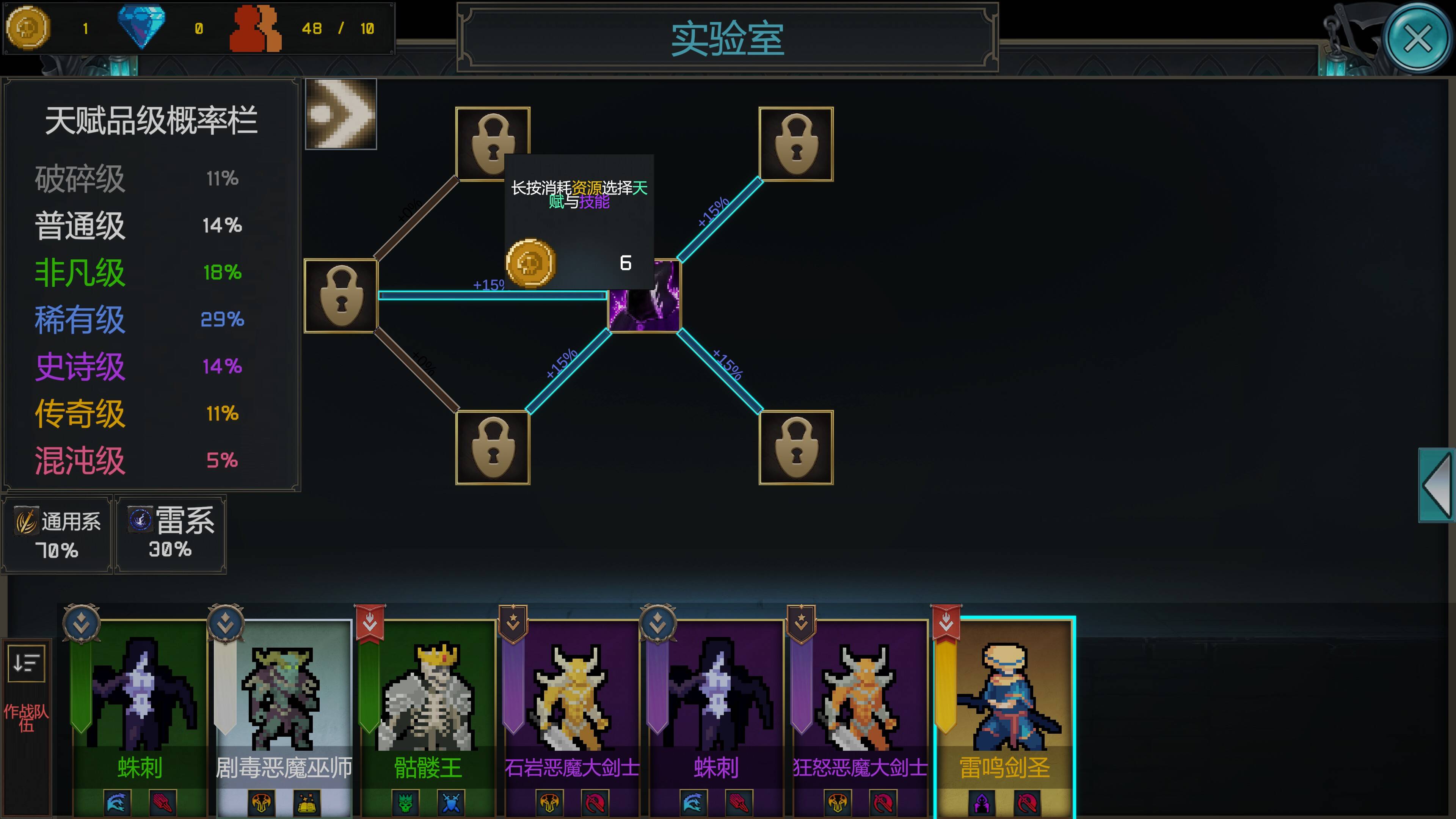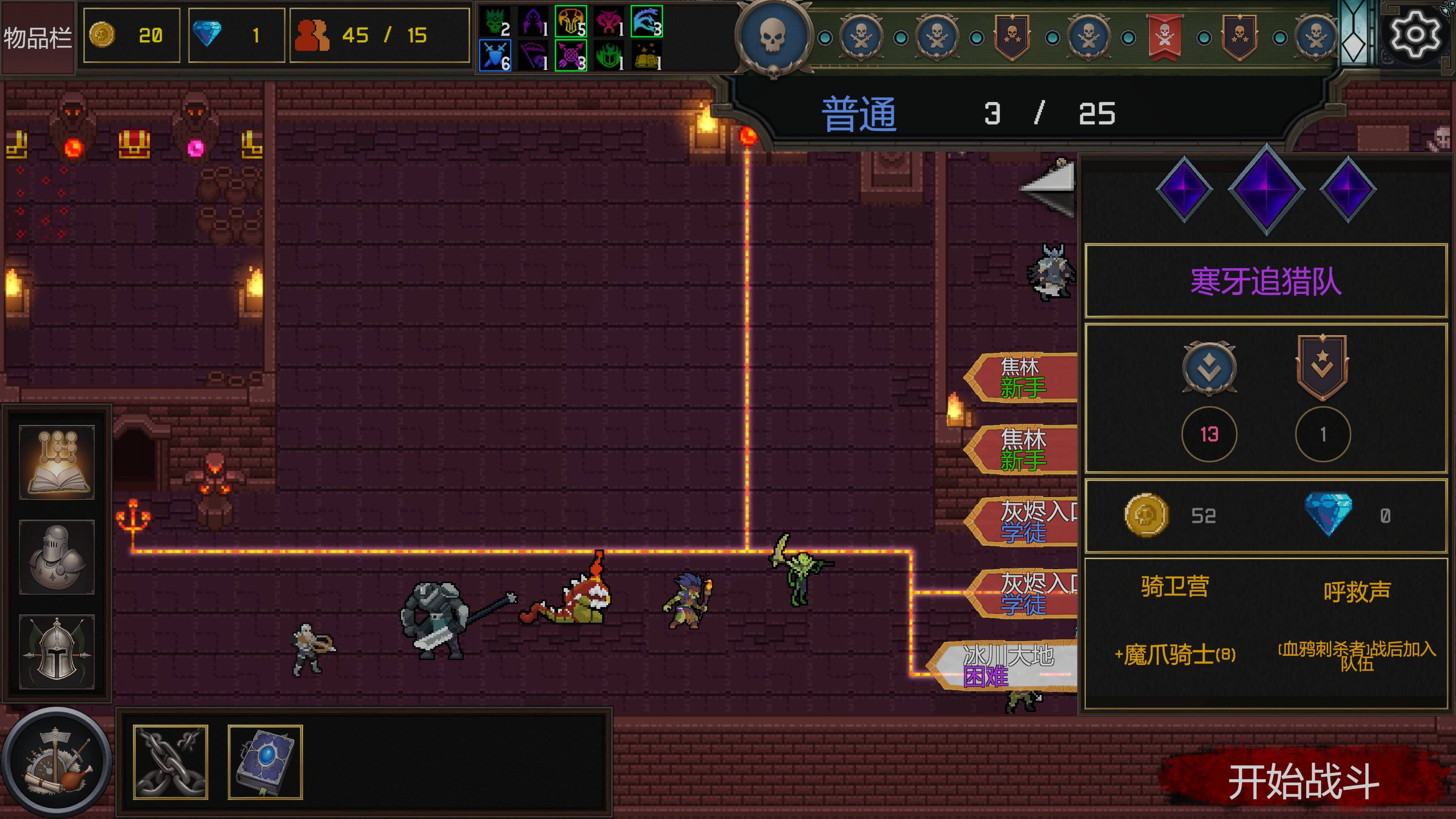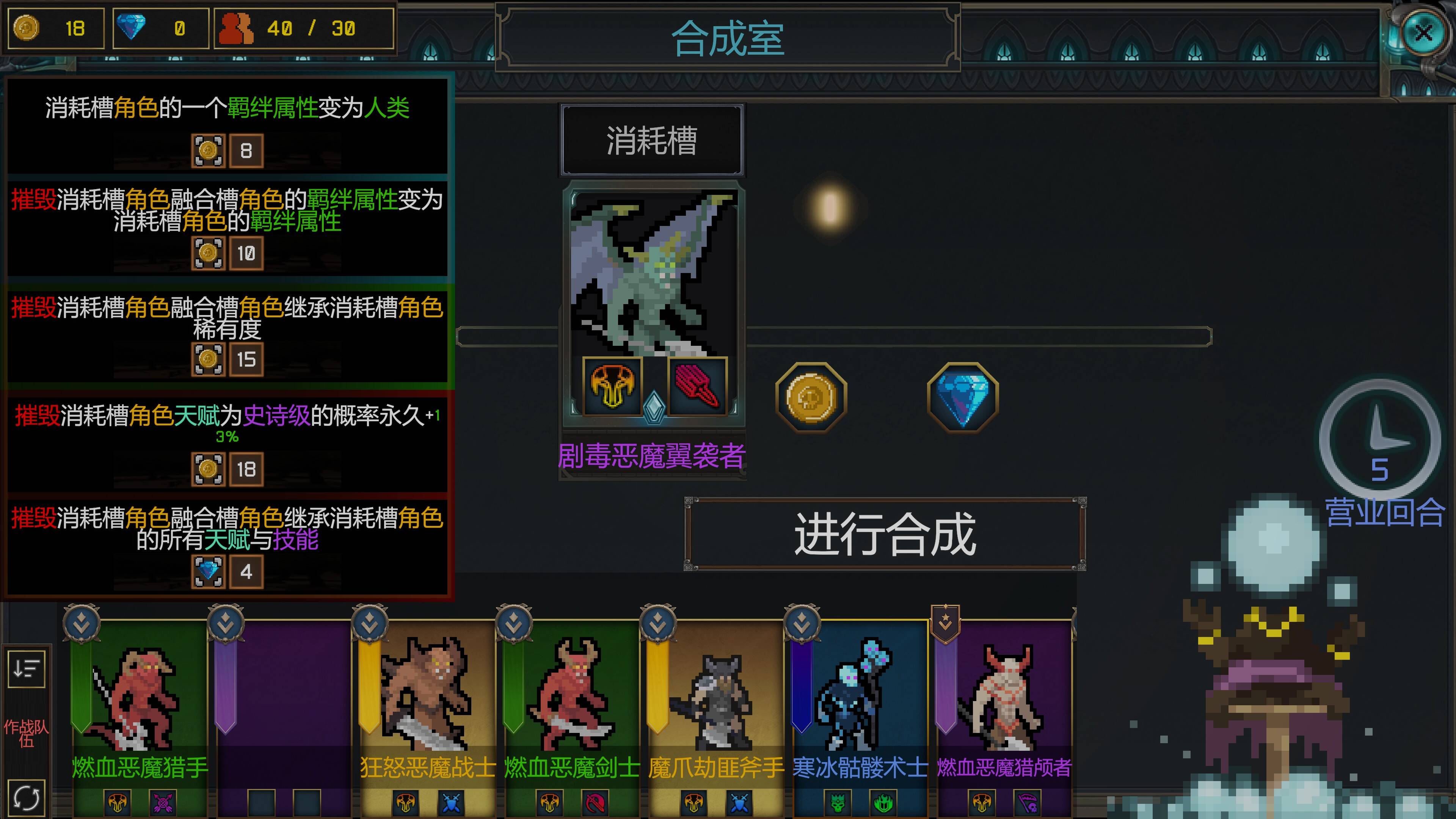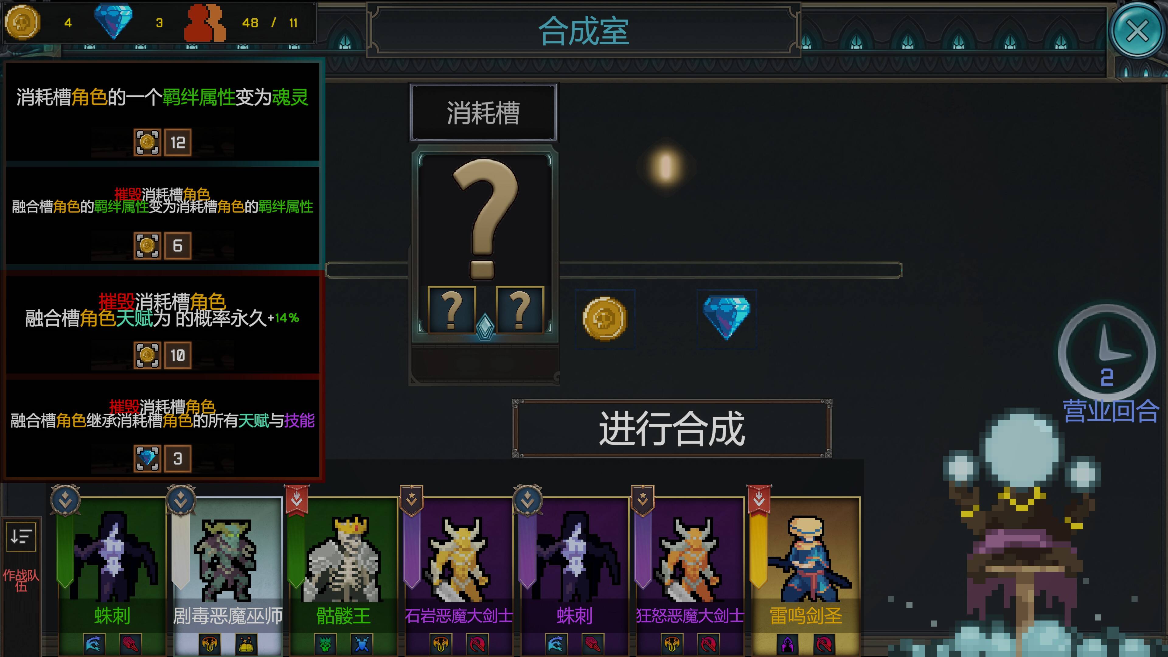 军团建设:游戏的核心玩法之一是构建并管理一支由不同角色组成的军团。每个角色都有其独特的属性、技能和天赋,这些技能和天赋在每次游戏开始时都是随机生成的,增加了游戏的策略性和不确定性。玩家需要通过招募、升级、合成等方式来扩充和强化自己的军团。每个角色都有自己的成长路径,玩家需要根据角色的特点来制定合适的培养策略。