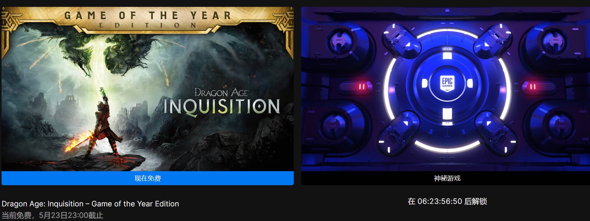 Epic本周喜加一已更新,神秘游戏为《龙腾世纪:审判》年度版,时间截止至5月23日23点,感兴趣的玩家不要错过了,下周继续神秘游戏。