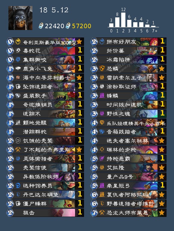 五月第三期狂野卡组搬运,本次补丁对狂野影响可能还比标准的影响还大一些,首先就是对任务术的削弱(不过削两费的效果另说),其次就是喝水快攻暗牧的削弱,一费对快攻来说可能还挺关键的,再就是决战退出偶数骑,对宇宙骑也有或多或少的影响。对卡组有疑问或想了解详细构筑的可以评论区问问,或者直接看网站 https://hearthstone-decks.net/,同时以后应该也会以网站数据为主搬运卡组,同时隔壁b站会不定期直播炉石影之诗万智牌以及其他游戏:不知所措某萌新的个人空间_哔哩哔哩_bilibili 欢迎大家关注。 (搬运纯属个人行为,有疑问还请联系)