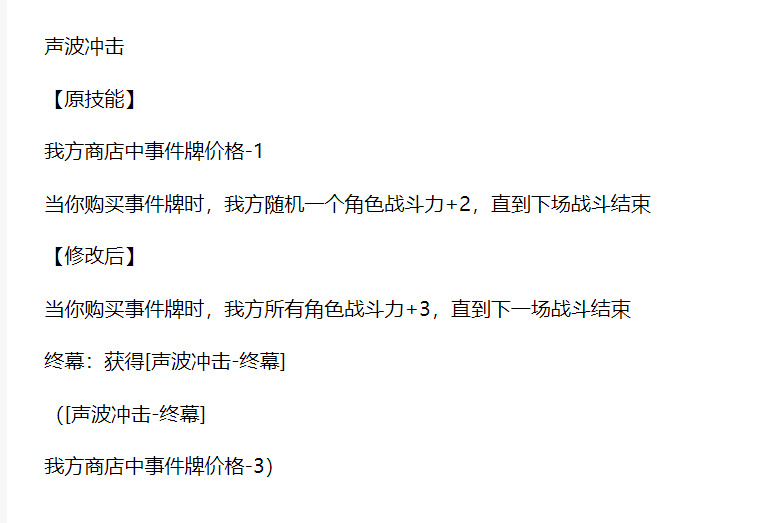 声波也是加强,虽然感觉节奏慢了,但是下限提高了很多,再也不用担心拿到声波的时候没有战力了。终幕效果虽然小于以前的四声波的效果,但是他只要一个卡位,秘闻女巫卡组的遭遇卡会有更多选择,这个改动挺好的,盘活了很多卡组,好吧,最强的还是薯片砍头。