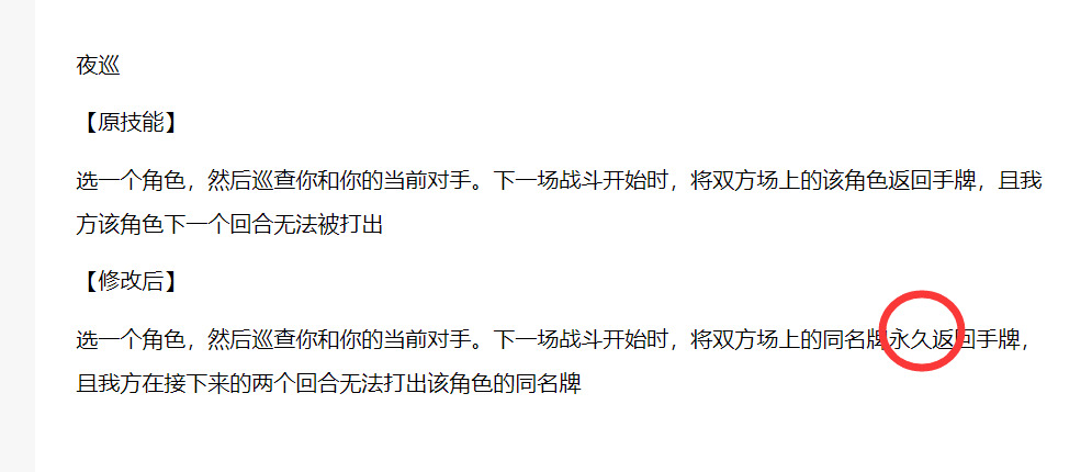 (我认为永久返回手牌这个是卡面描述错误,不可能有这么bug,会让被夜巡的玩家体验极差)