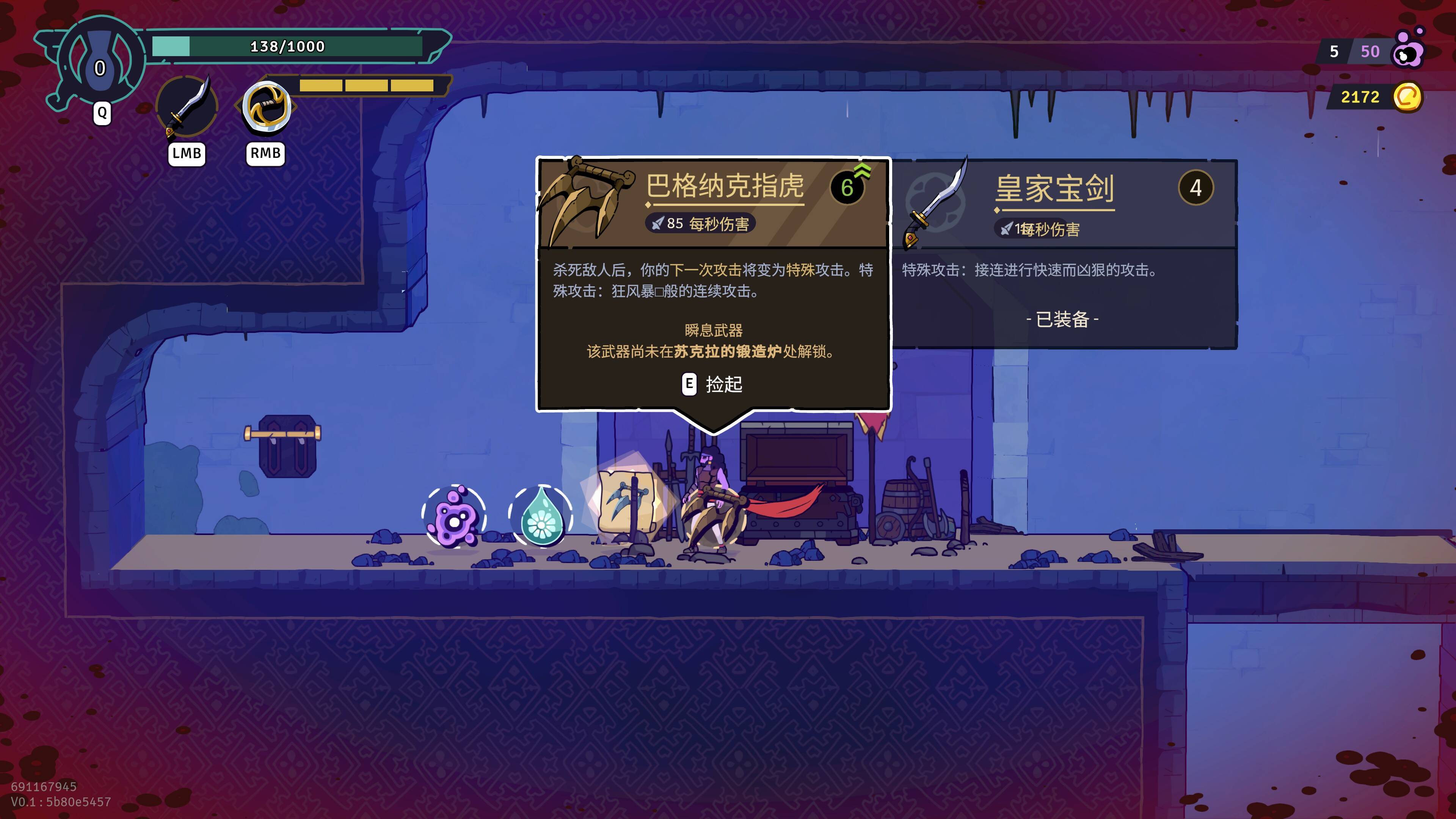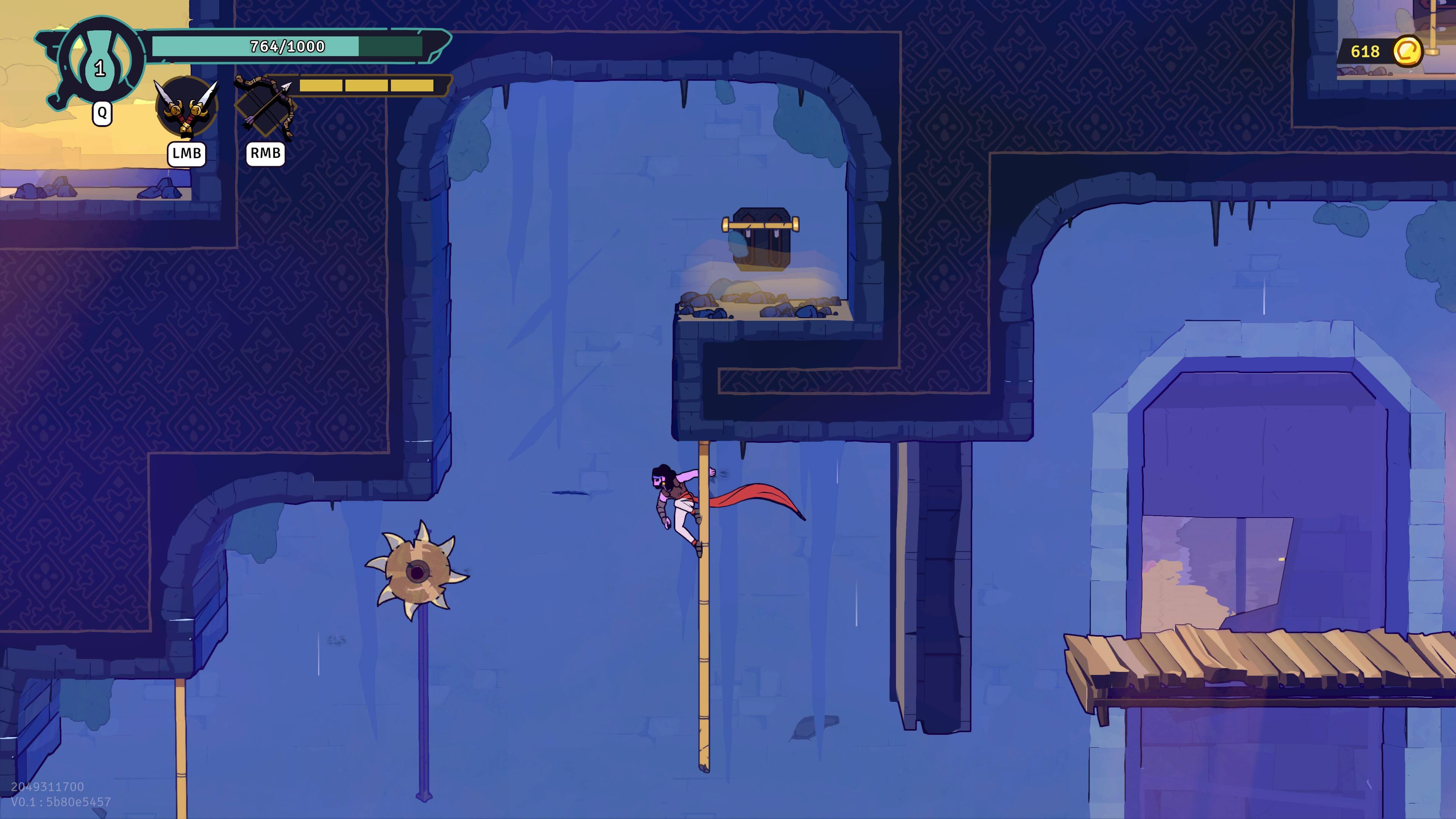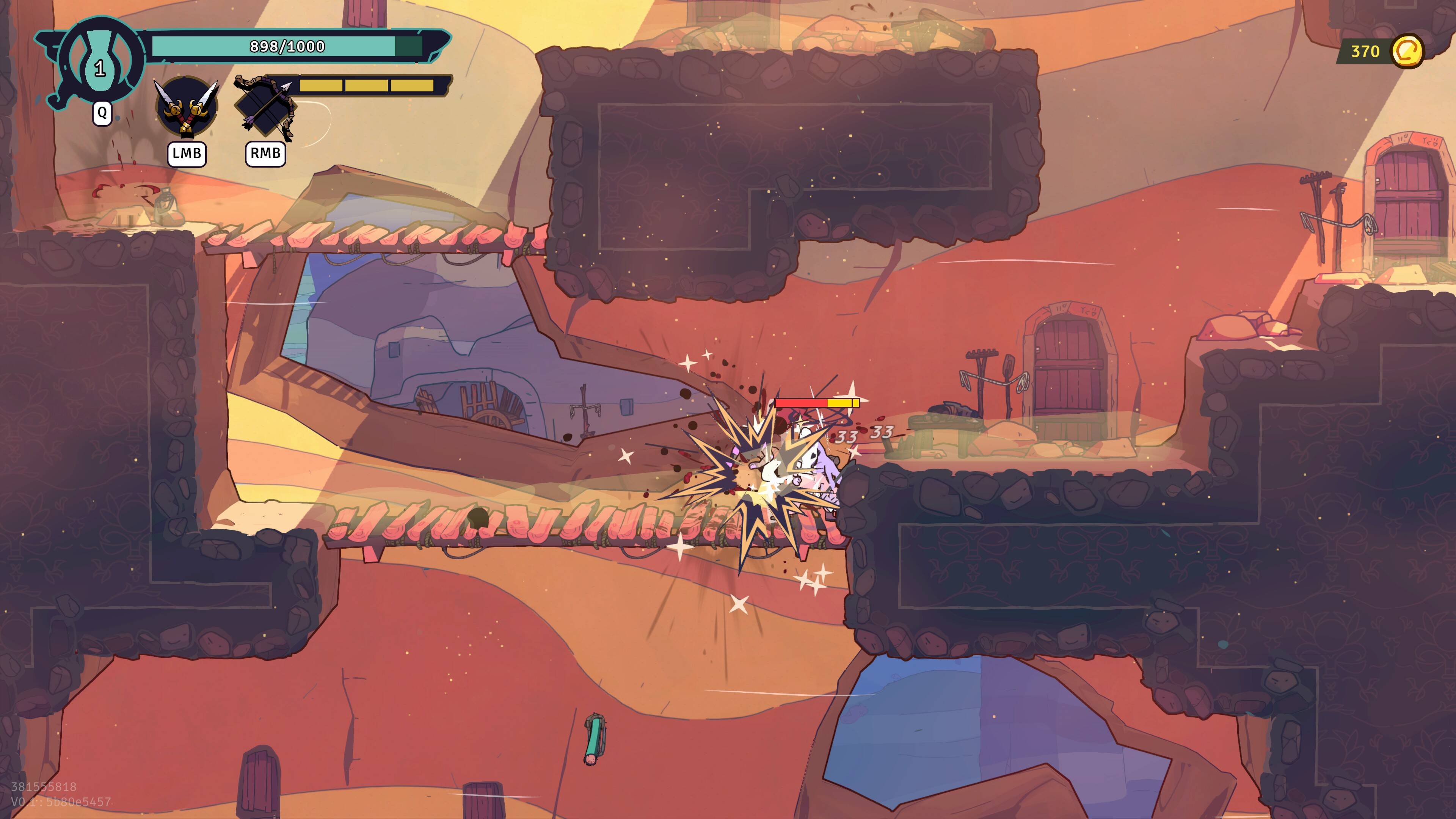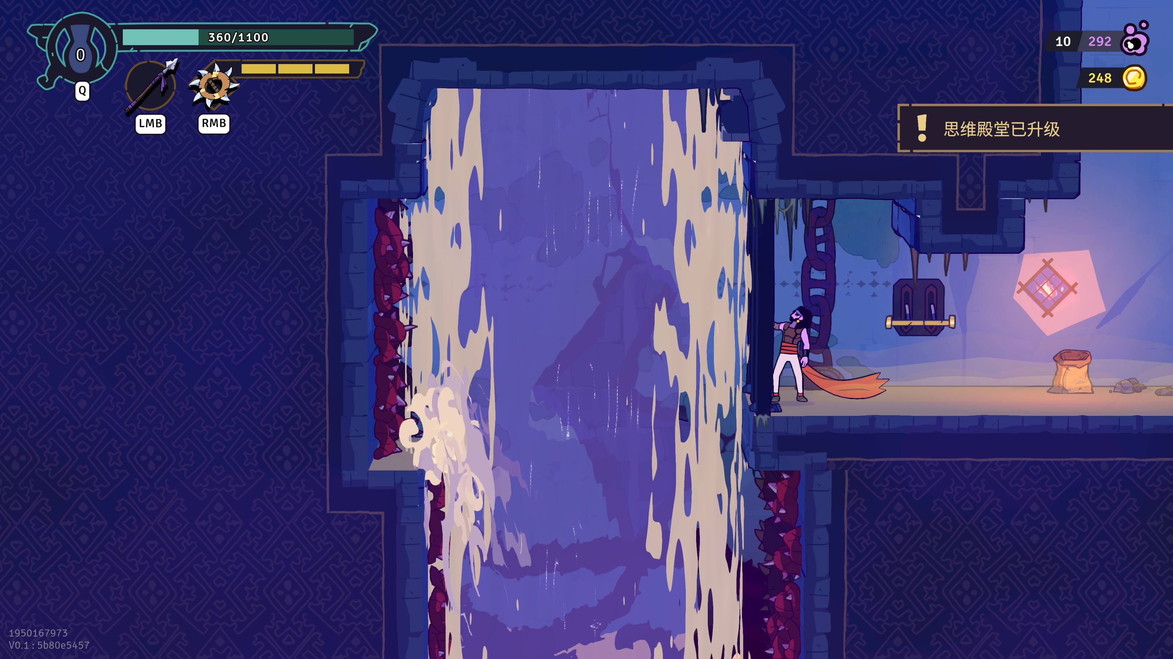 游戏关卡有点类似银河战士恶魔城,采用了Rogue的随机元素来模块化生成,所以每次关卡的平台与内容都不太一样。每次进入新的关卡我们都可以引用水池里面的水进行回血并且补充一瓶回血瓶。在路上冒险时,也有很多传送点让我们随时去往未探索的地方。玩过《死亡细胞》的小伙伴们可以注意到,很多怪物动作与各种元素都与《死亡细胞》非常相似,毕竟***戏,都有那味儿。