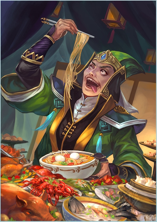 众所周知,三国杀中的武将都有各自的画像。大家不要以为这些画像都是画师随便画的,实际上这些画像都是根据相关的史实创作的。如:曹冲称象、诸葛亮夜观天象、张松献图等。不过三国杀中有部分武将是个“吃货”,今天就来细细分享一波。