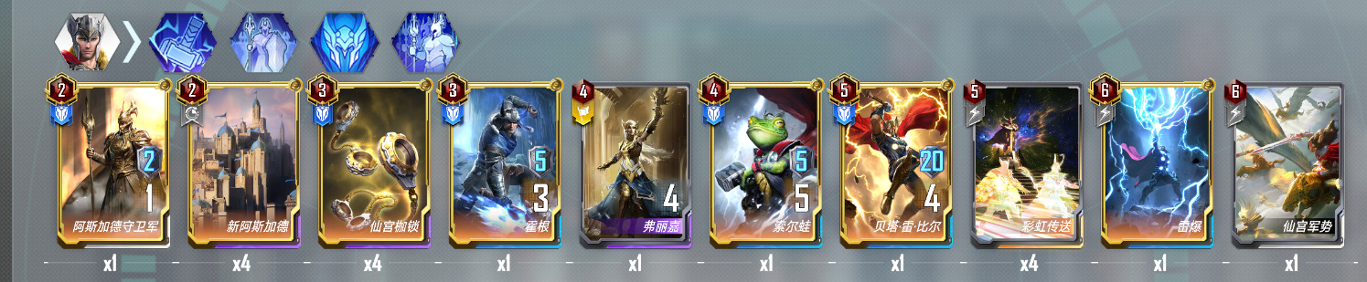 5费:彩虹传送在前期不顺,达成四败条件后进可一键上手核心,退可免费滤牌,实属物美价廉。马面雷神也是力量宝石的食粮。