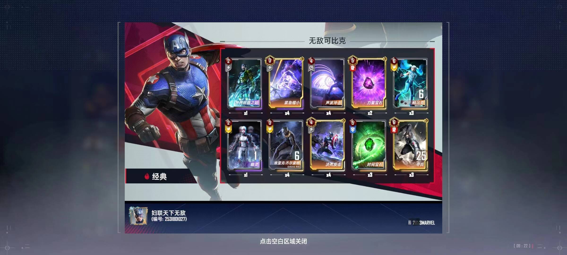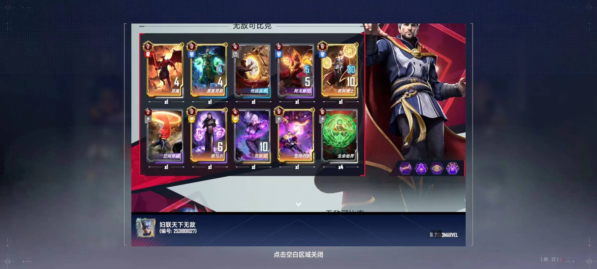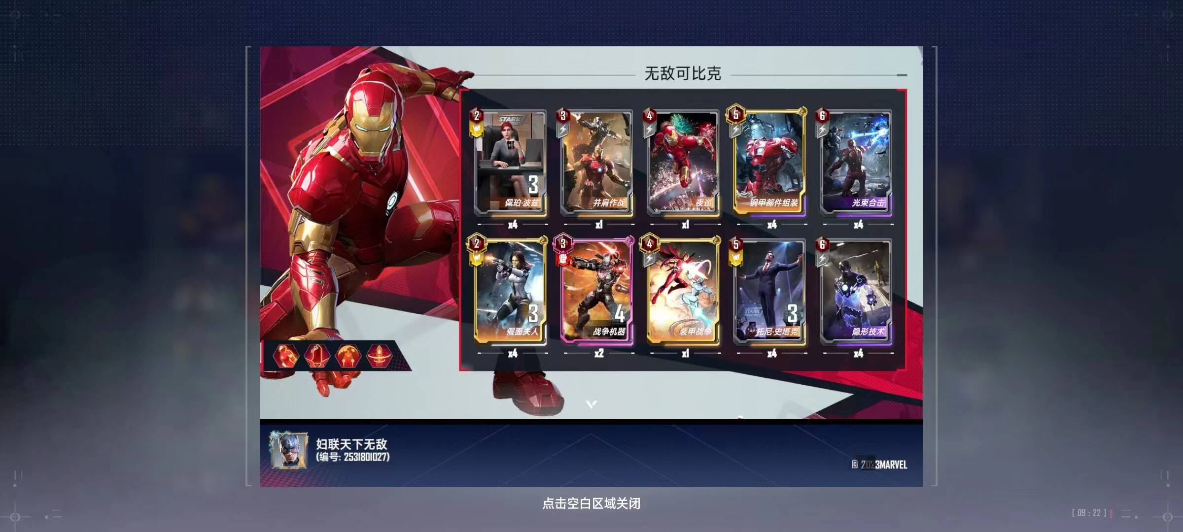 前期:主要靠血魔运营,由于奥马尔削弱,之前的3费黄蜂女换成豹子,夫人由于2+1和4星一个德行(diss下策划,这是人能想到的吗)可以考虑2+1上5本,当然有4星可以上四碰5费卡 有托尼当然最好了,注意现在并肩被削弱 不要用豹子并肩,可以用豹子给的三费卡,注意如果给到3费叶莲娜可以考虑上四搜下声波再并肩赌下,前期靠异界战争苟血(我只有三张,有四张一定带满)凑齐夫人后就上五本搜声波和托尼,由于现在小辣椒不给加钱了(diss下策划,不给返晶石真坏,不算削弱算魔改是吧?)但是像4费的夜训和钢铁终幕可以原价买通过小辣椒链接原价卖出,如果碰了个6费钢铁侠卡牌,记得通过小辣椒卖掉(由于小辣椒2+1作用不大 可以直接碰4,小tips:2+1到4星小辣椒可以分别原价卖钢铁卡牌,可以在过程中原价卖4张)