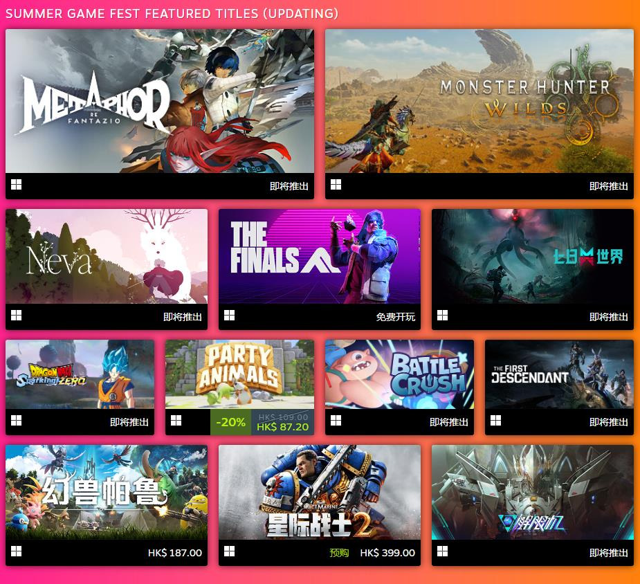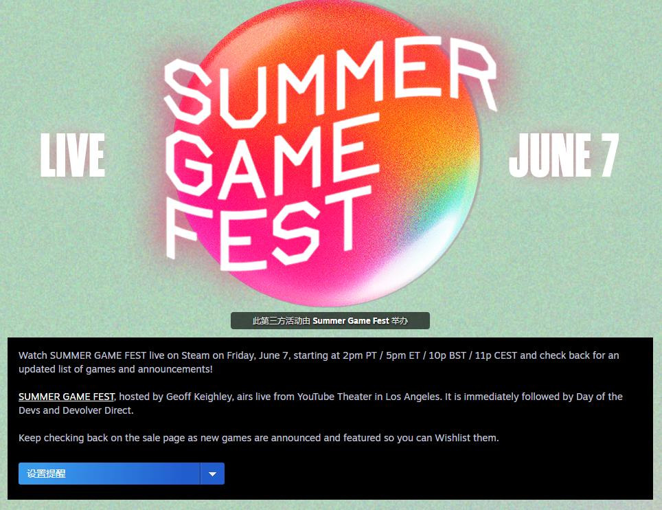 Steam的夏日游戏节活动页面现已正式上线,本次夏日游戏节将在Steam上全程直播,活动页面也将更新最新的游戏列表和公告,目前该页面已经更新了一些将在夏日游戏节上展示的游戏,更多游戏还在更新中。