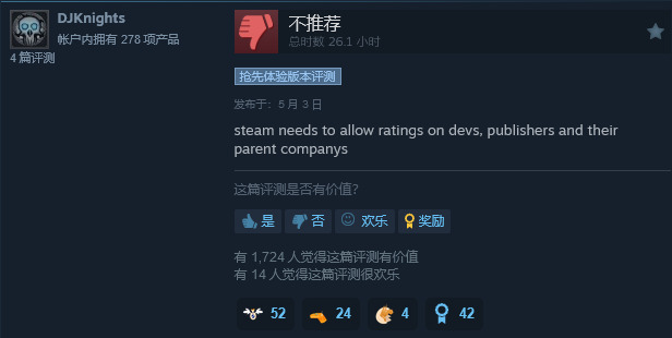 许多粉丝对于之前的报道反应十分不满,Steam 上最近的用户评价为“差评如潮”,国内外的粉丝都对游戏将不再获得更新表达了不满。小编当初也对游戏进行了评测,游戏发布时的状态并不理想,缺失了许多前作已有的功能并且性能优化不佳,从玩家评价来看,游戏在发布后仍然存在大量问题没有得到解决。