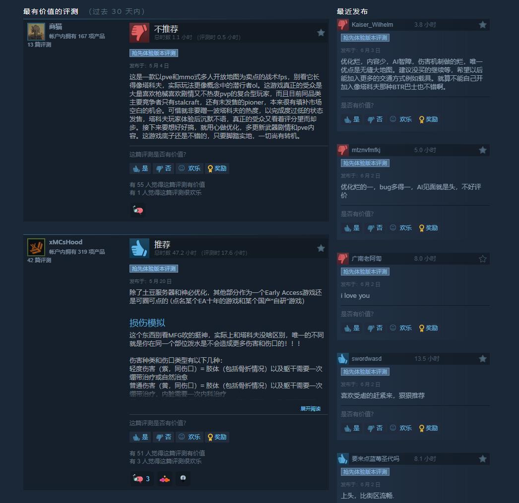 不过值得注意的是,由于游戏还在抢先体验阶段,目前Steam上评价为褒贬不一,中文区差评集中在游戏内容少及优化差等方面。