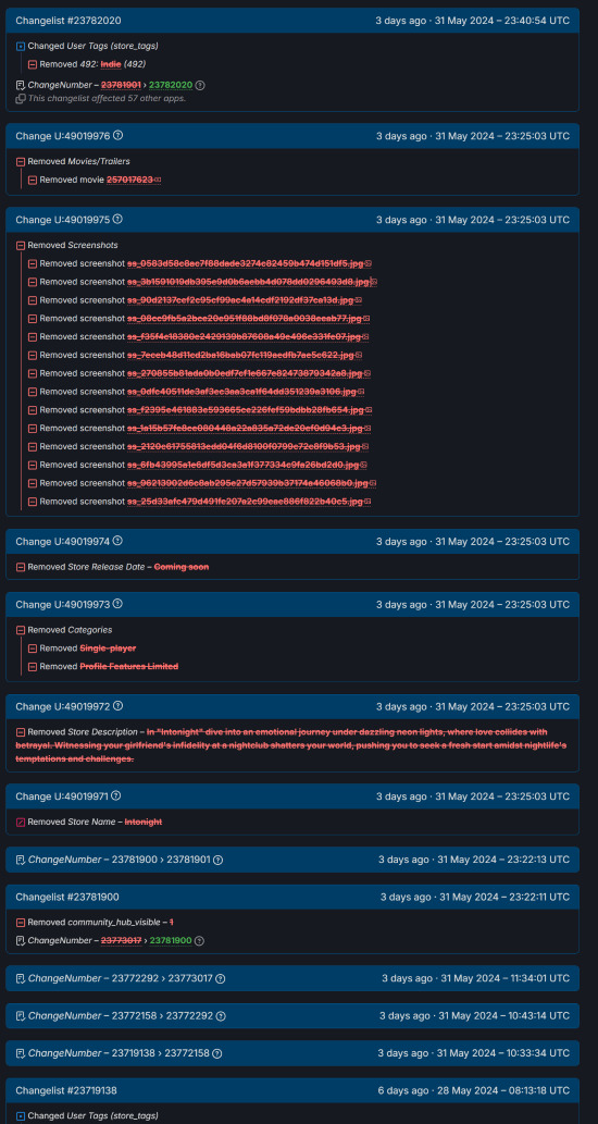 根据SteamDB的消息,这款游戏在5月31日删除了包括游戏截图,游戏预告片,商店描述等大量信息,而在Steam平台直接搜索《夜蒲女子图鉴》,也无法找到该游戏。