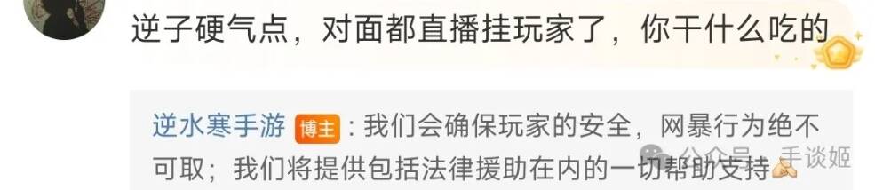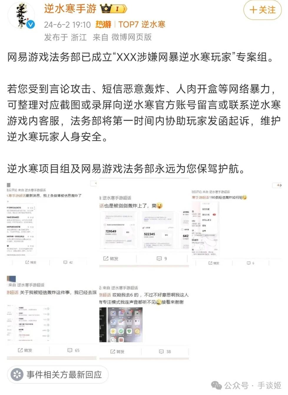 《逆水寒手游》随后发文表示要保护自己的玩家群体。
