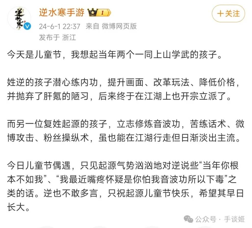 前几天,就在咱们过儿童节的时候,MMORPG圈发了一场恶战,《剑网3》和《逆水寒手游》打起来了。