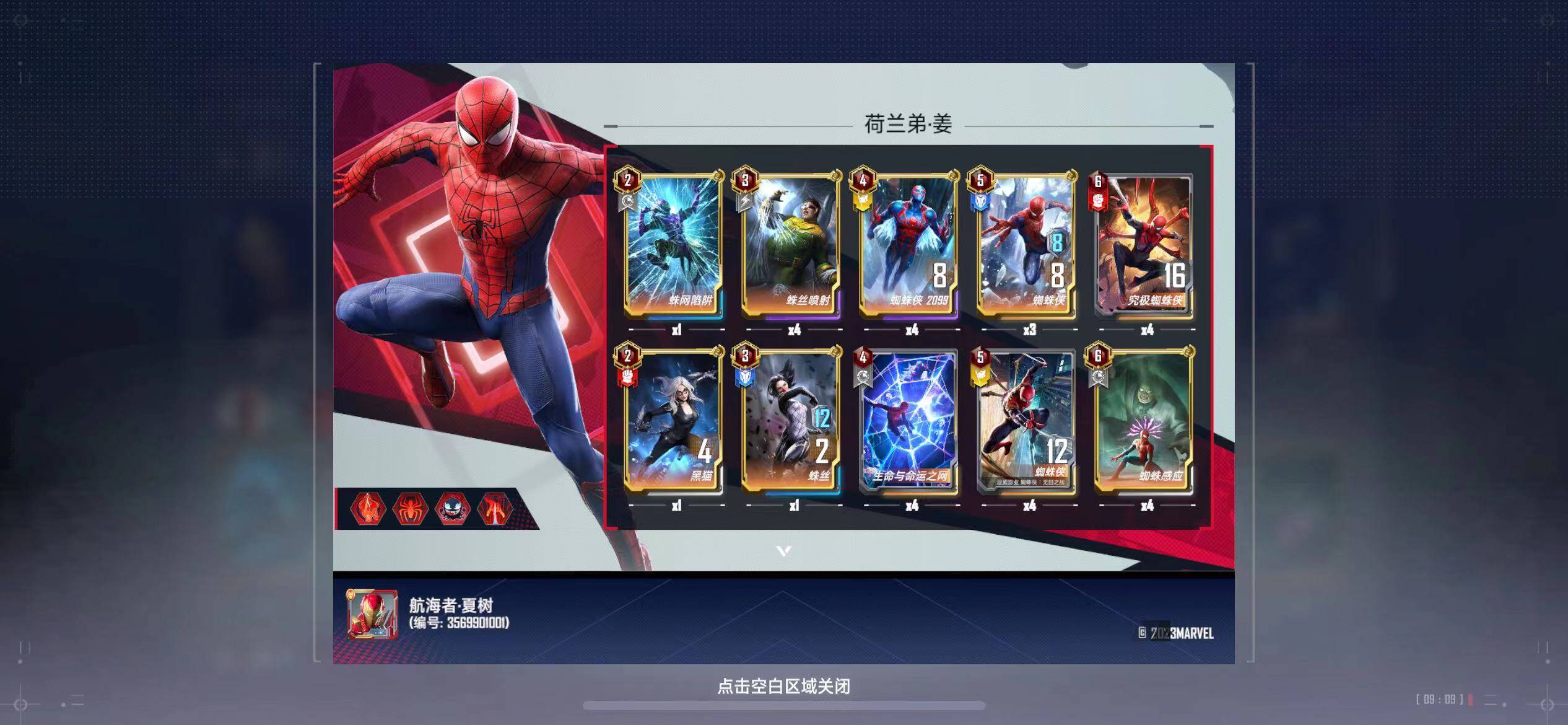 蓝蜘蛛侠:配合仙宫护盾,可以在中期拥有守护,配合2099和蜘蛛感应控制拉满。带三张是可以有一只在场上,有一只在手中,用女巫添加的秘闻牌中的亡者之手拉到场中直接触发亡语控住对方全场