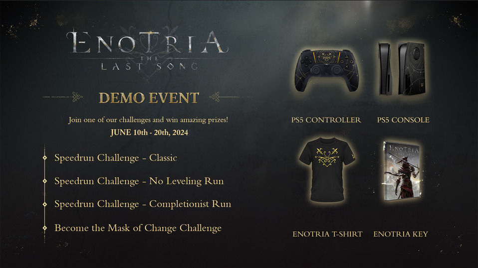 同时,官方还宣布了一场社区竞赛活动现已开启。活动将于 6 月 10 日至 20 日期间举行,首先是试玩 Demo 速通比赛,包括 3 个类别,分别是经典、不升级和完美主义者挑战;此外社区的创作者可以为主角创作装备和背景故事,来比拼谁的创意更加有趣。活动的奖品包括游戏本体激活码、周边T恤,以及游戏定制版的 PS5 手柄和主机。
