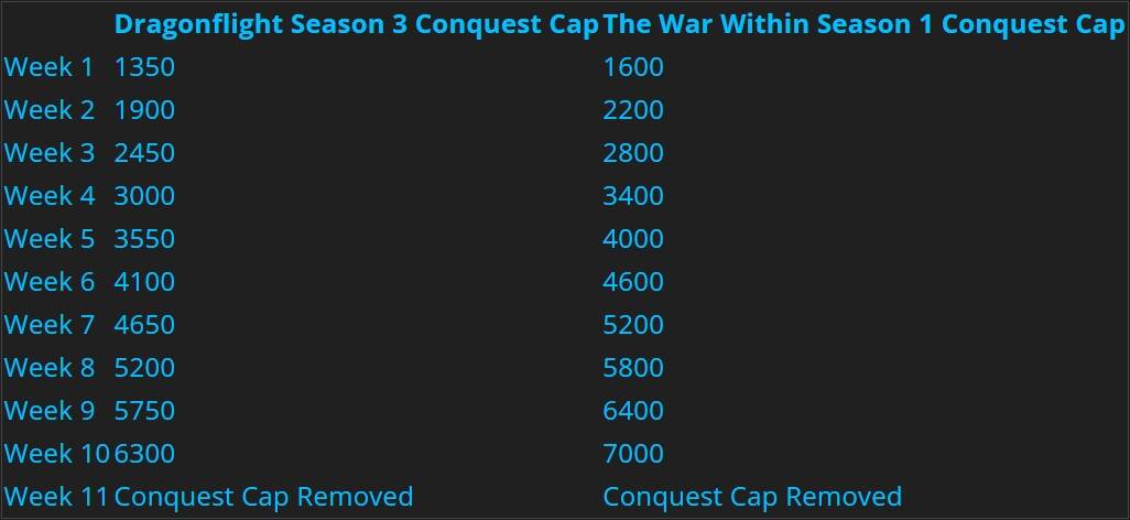 以下是与《巨龙时代》第 3 赛季对比的新每周征服上限: