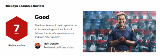 《黑袍纠察队》第四季口碑已解禁,IGN给出了7分的成绩。