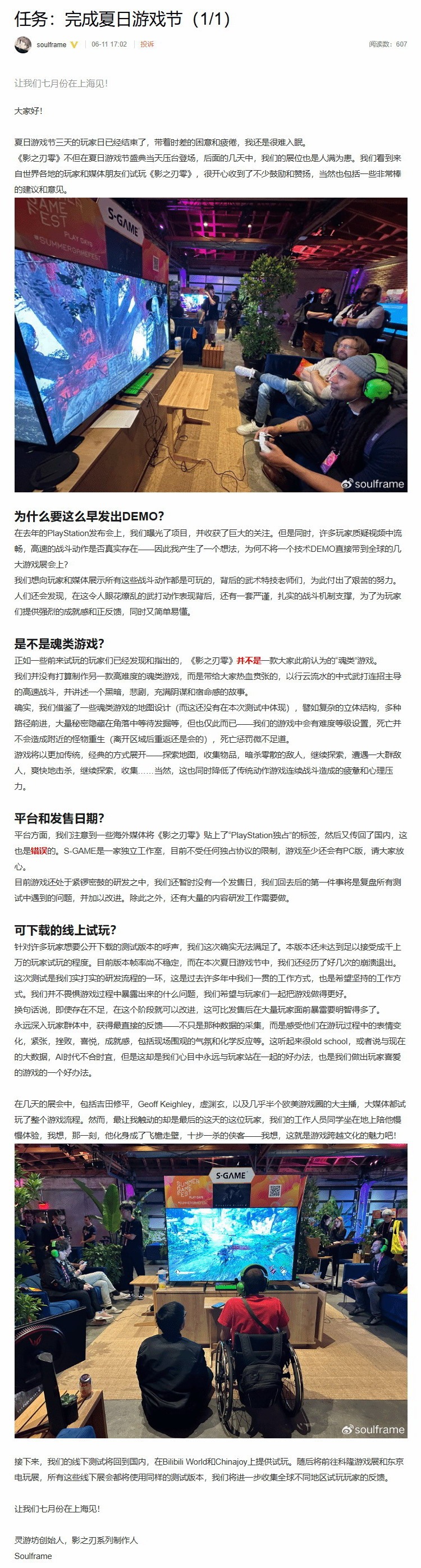 之前动作游戏《影之刃零》在夏日游戏节上大放异彩,给许多玩家留下了深刻印象。近日《影之刃零》制作人soulframe发文,对大家比较关心的几个问题进行了说明,一起来看看吧!
