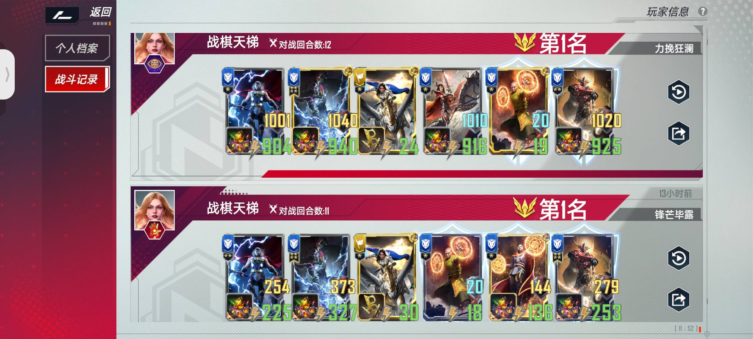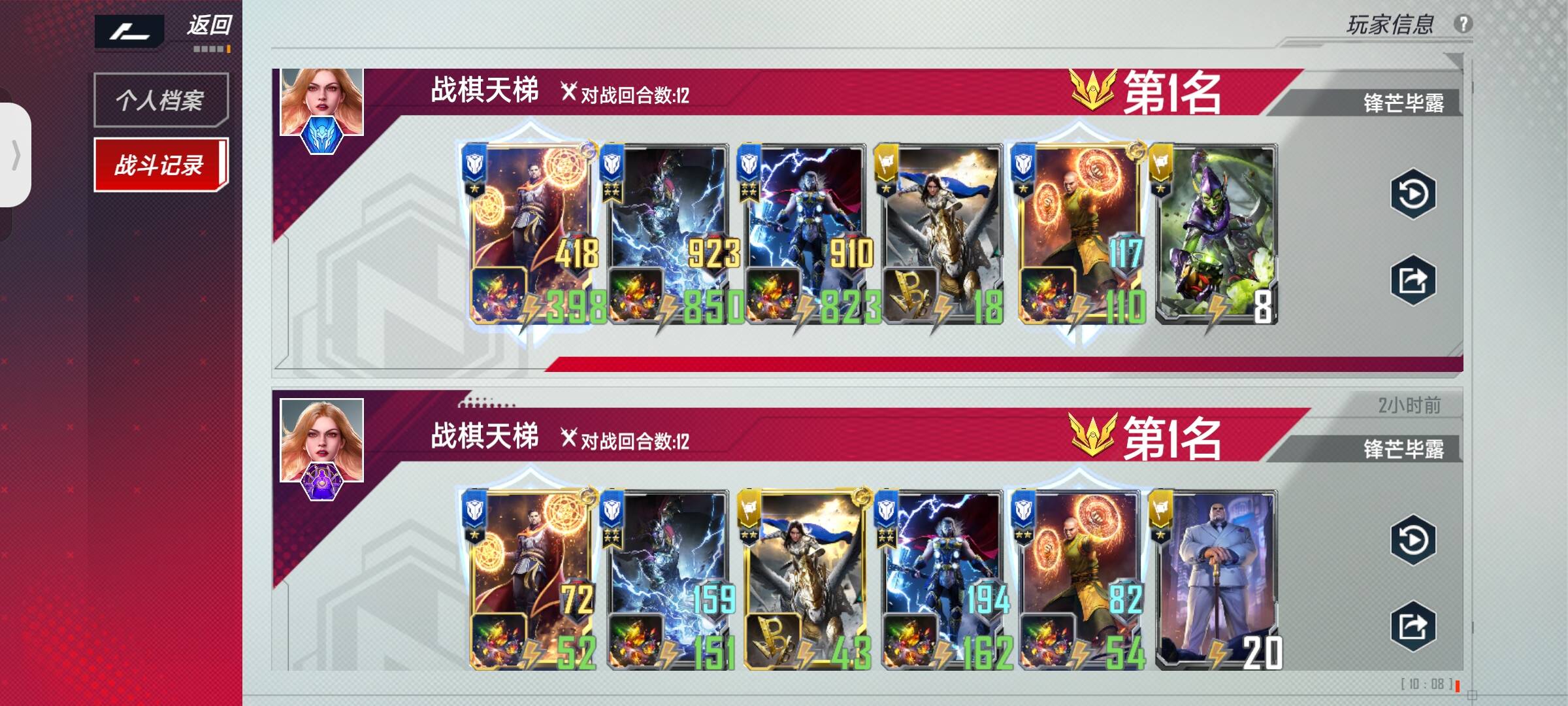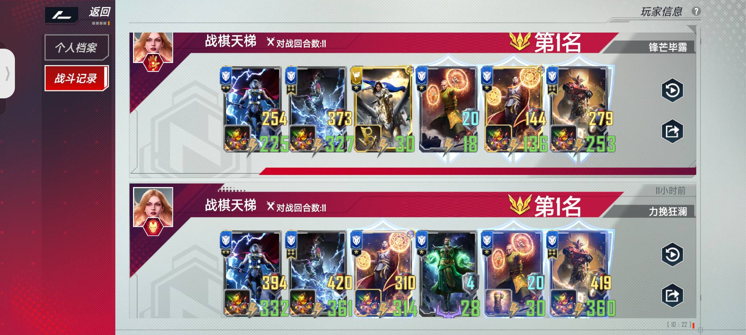 一般11到12回合才找齐3星奇异博士实现无限法,还有空间穿越的话,可以把2星博士拉下来,上1星的上去养,这样就有两个大战力博士了。