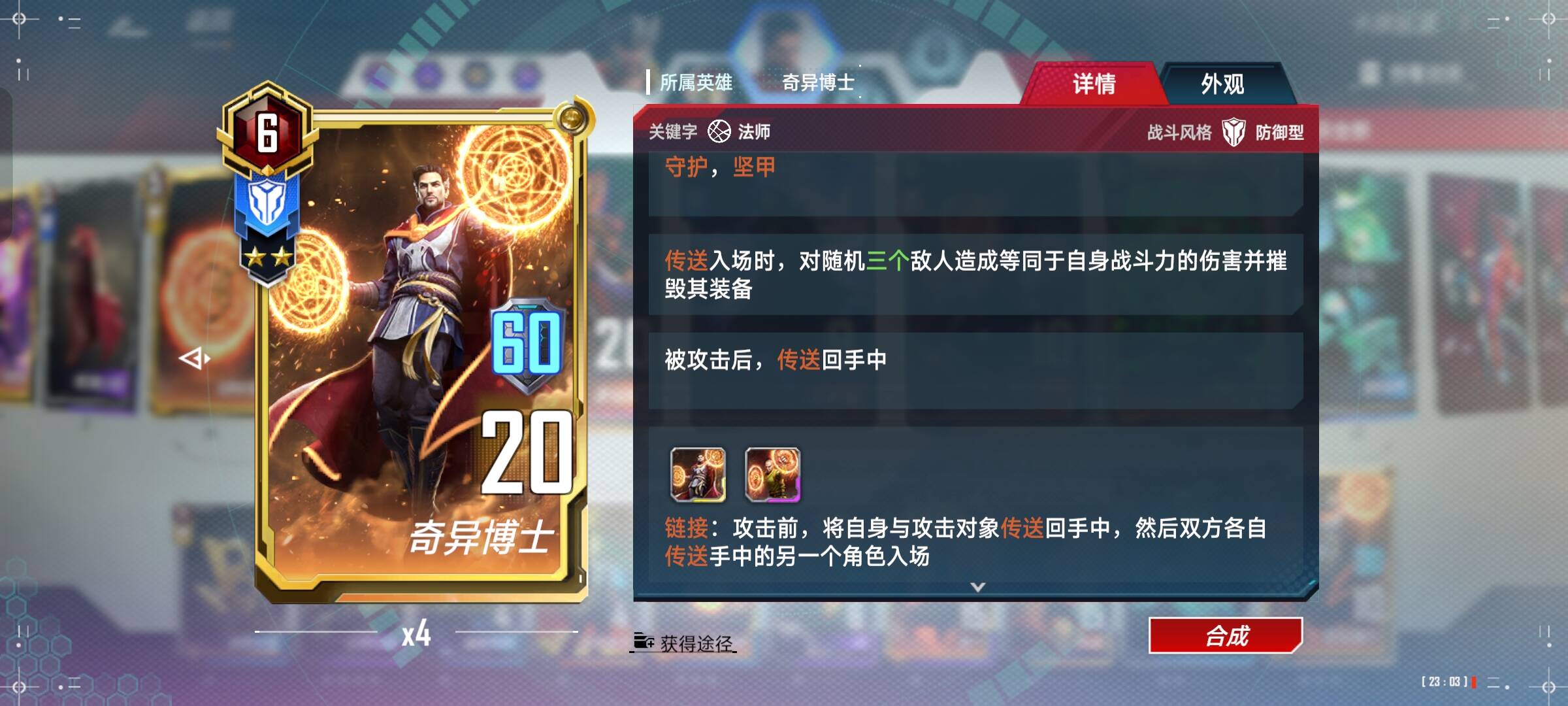 手牌:奇异博士 1星 (3星博士来临后,手牌只留一个博士,不要有其他角色牌)