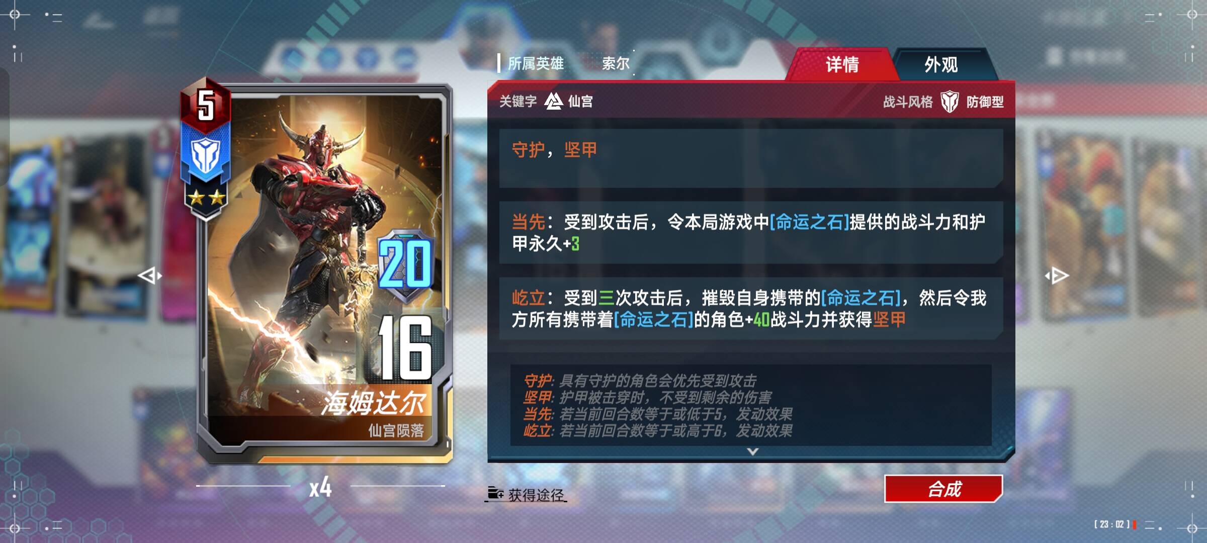 2,中期6~8回合通过扭曲,托尼来滤牌找牌,在5本找屹立海姆达尔贴陨落,继续养命运之石加成,找齐4星屹立索尔来战斗,以及找到新索来养大。