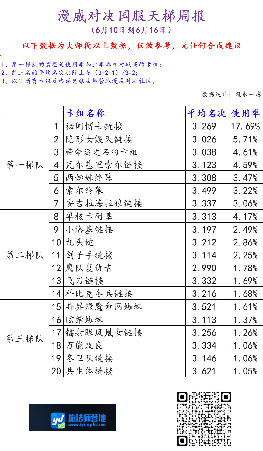本周报数据仅做参考,本文不做任何卡组推荐、合成: