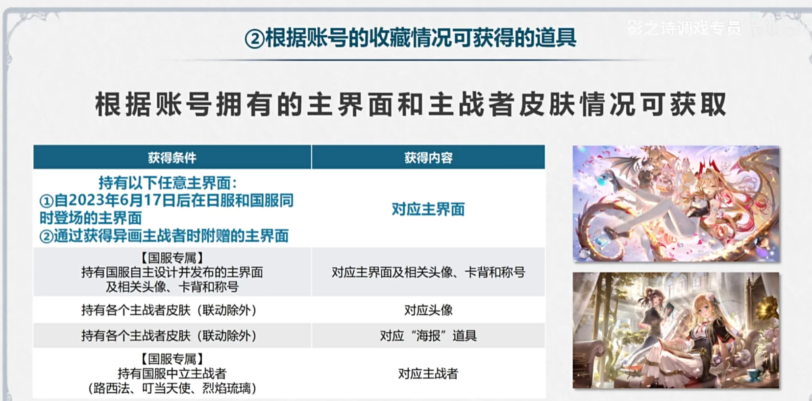 -帐号继承以及道具补偿,不出所料,异画还是只能变成“遗照”,但是国服自己的中立主战者似乎能得以保留,网易已经做出了努力,能够获得的道具已经放在了下方表内,具体内容大家可以观看视频