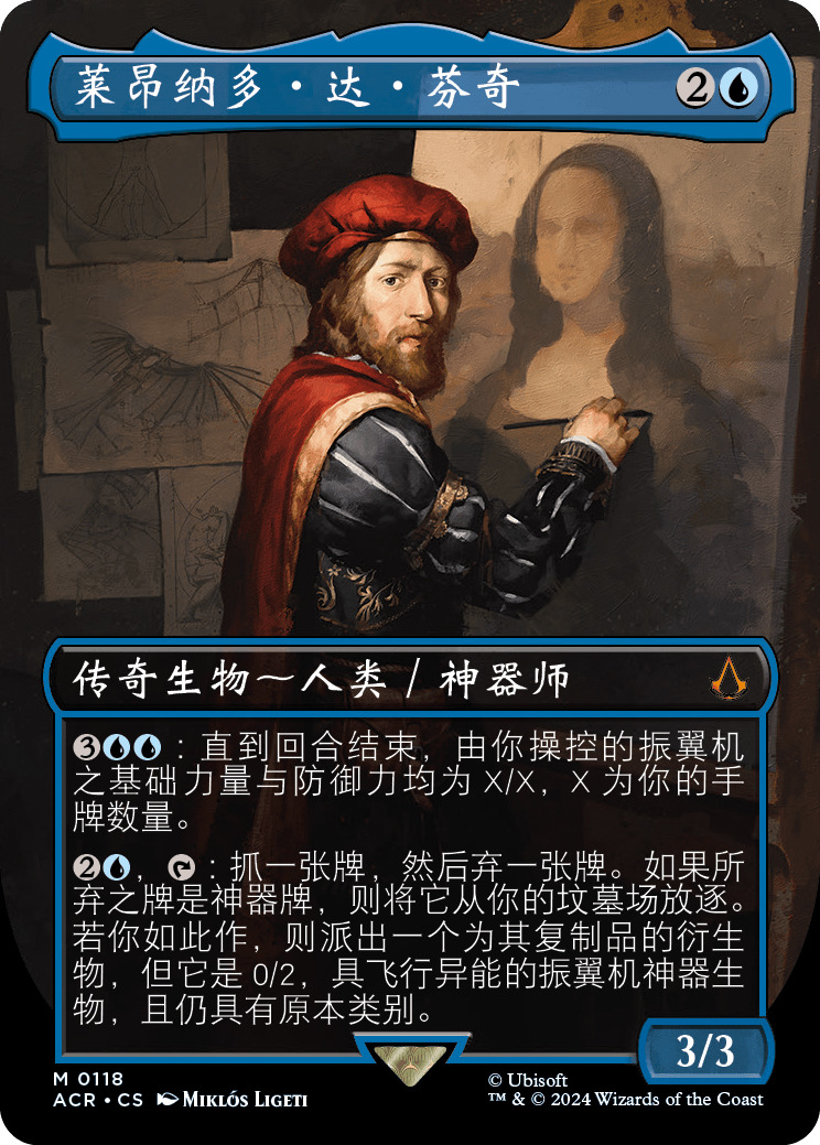 **限量编号牌会出现在任意语言的Magic: The Gathering – Assassin's Creed聚珍补充包里。非限量编号的历史人物在机制上和限量编号版本一样。可在产品包装上了解详情。图片为数字效果图,并非实际牌张。