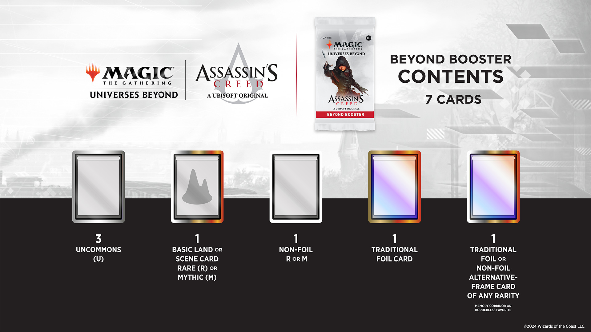 Magic: The Gathering – Assassin's Creed是我们第一次使用无疆补充包。无疆补充包是无疆新宇宙的新补充包类型,用于万智牌的中型产品。Magic: The Gathering – Assassin's Creed不可用于轮抽,也不会在《MTG竞技场》里上线。