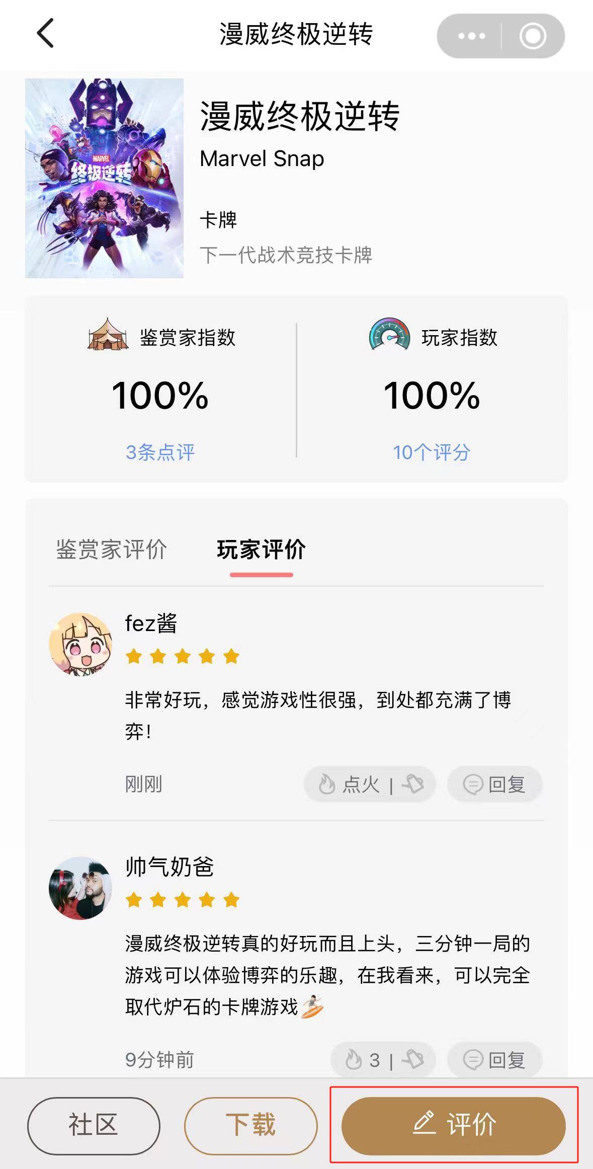 1)已经获得测评资格的探员们点击下方超链接进入营地游戏中心中漫威终极逆转的评分页面,发布有效评分以及与《漫威终极逆转》内容相关的评论