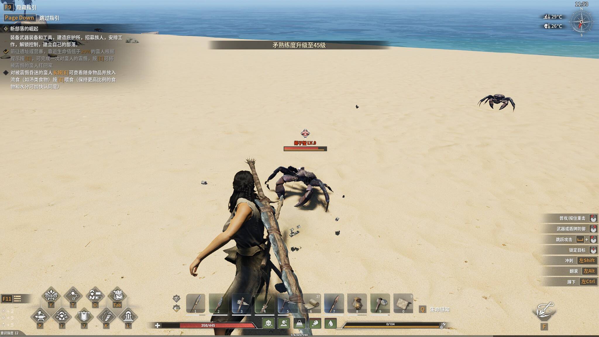 在战斗方面游戏提供了八种不同的武器,从常见的矛、剑到不太常见的双刃、大锤都有,并且赋予了品阶系统,每次制作武器都会随机出现不同品阶,随着武器熟练度的增加,除了基础的普攻和蓄力以外还会解锁武器特殊技能,另外游戏战斗过程中还加入了弹反系统,在合适的时机弹反可以震晕敌人,对于生存游戏来说战斗体验处于上乘。