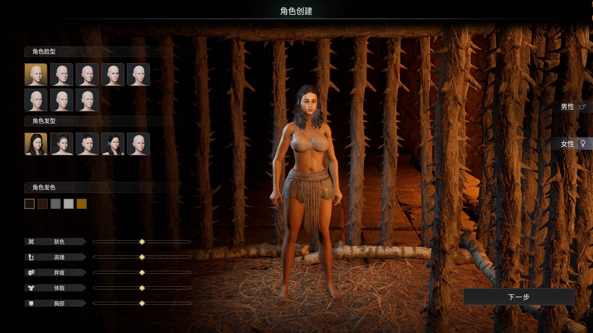 不得不说这游戏是十分懂玩家的,开局捏脸部分给胸部单独设计了选项,转动角色时呼之欲出的动画效果也确实能更加钩住玩家的心,但毕竟是一款生存游戏,最重要的还得是游戏内容。