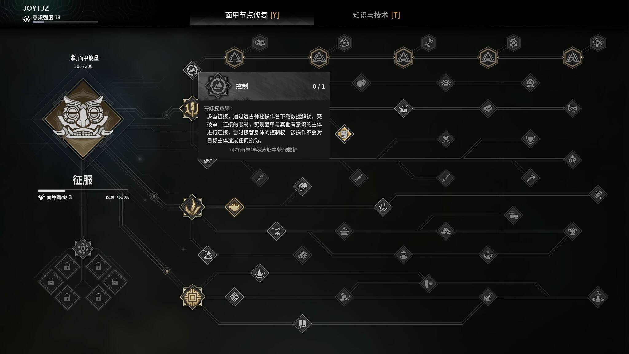 《灵魂面甲》最大的特色那肯定就离不开面甲系统和野人奴役系统,先说前者,游戏的面甲可以理解为传统意义上的科技树,可以为角色解锁不同的技能,传统的科技树需要依赖玩家战斗获取技能点,用以解锁各种技能,但本作则是以探索来驱动,玩家并不需要提升人物等级,而是通过固定资源绿晶石来获取,部分能力需要通过探索固定遗迹才可解锁,面甲的能力自然也就成了探索的驱动力,在这样良好的循环下,玩家可以获得的正反馈也就更多