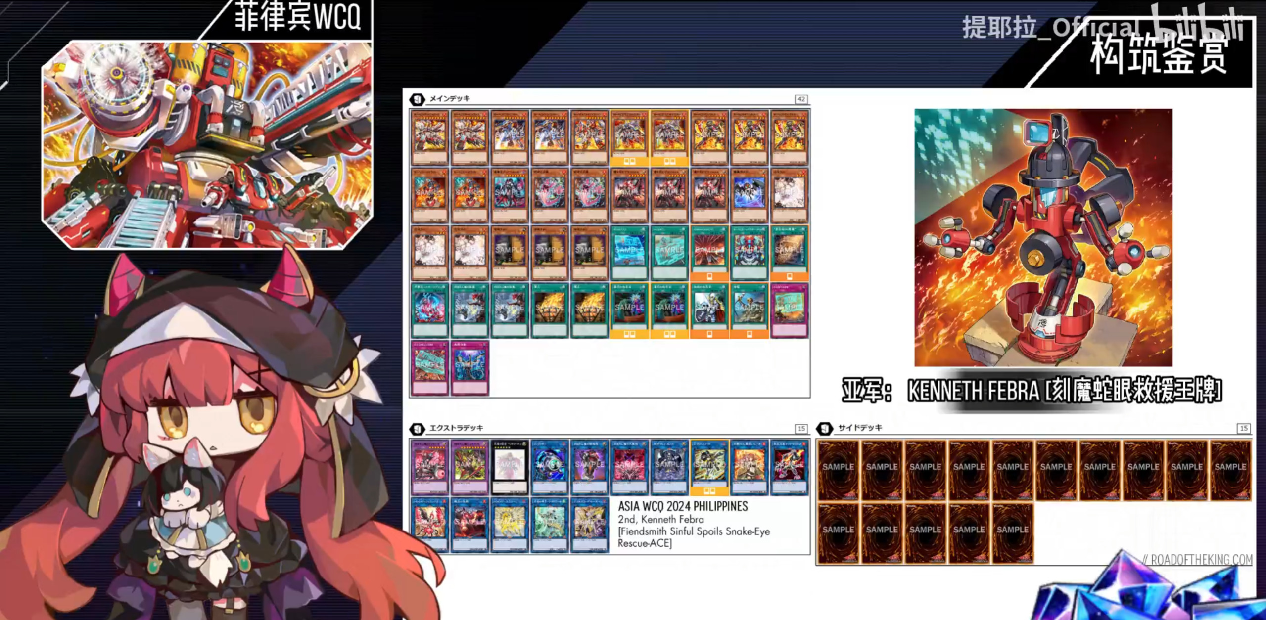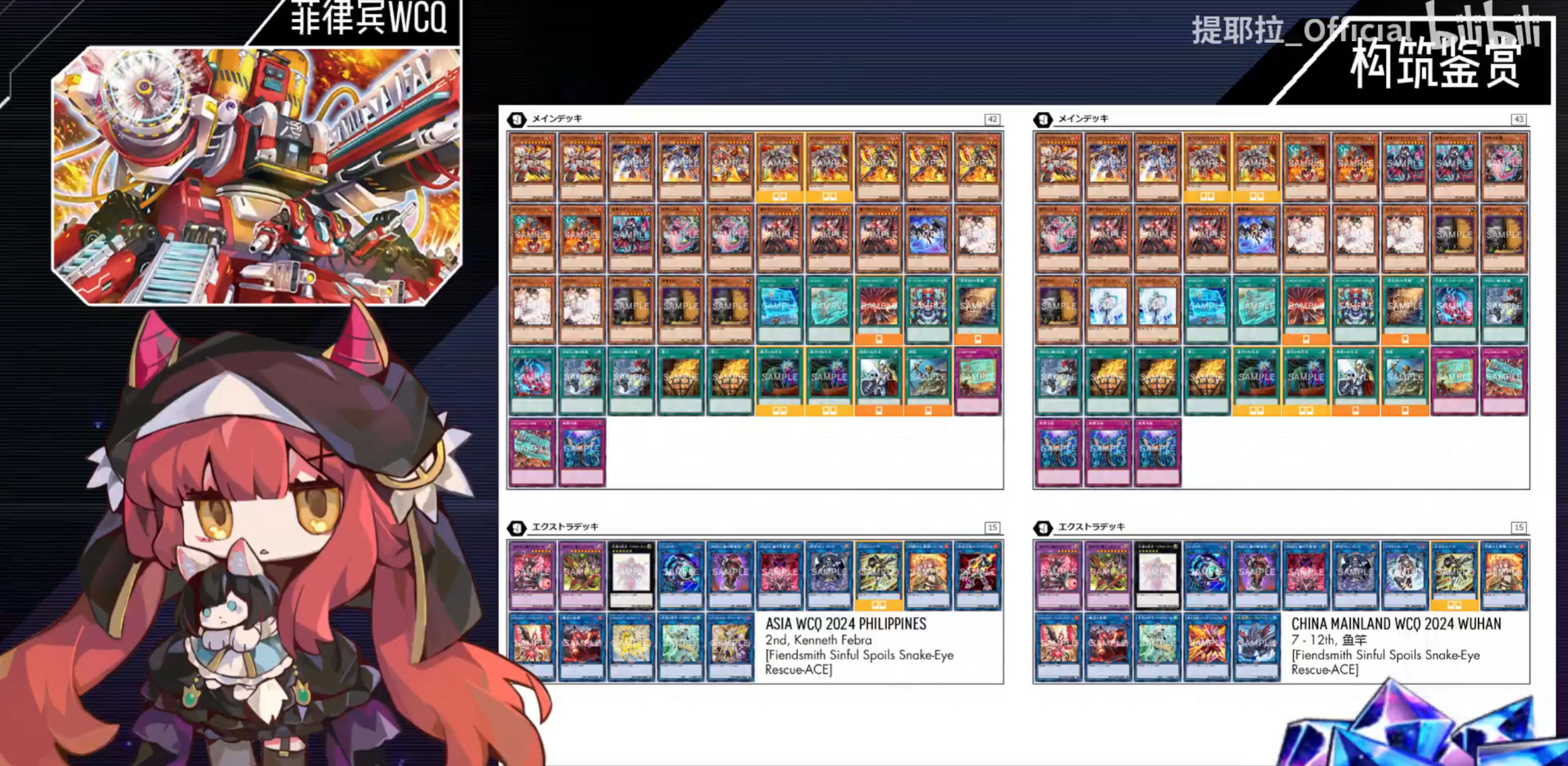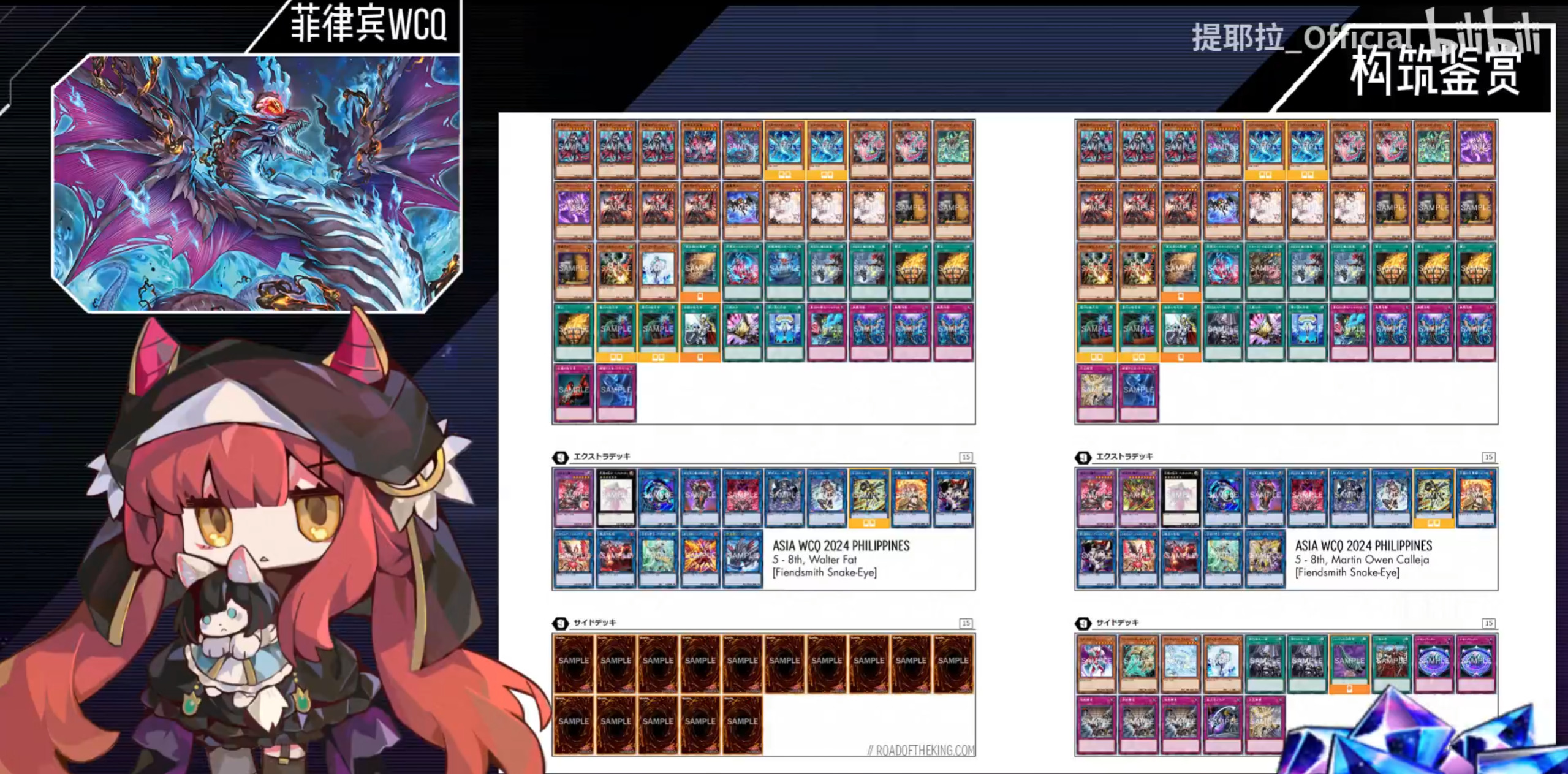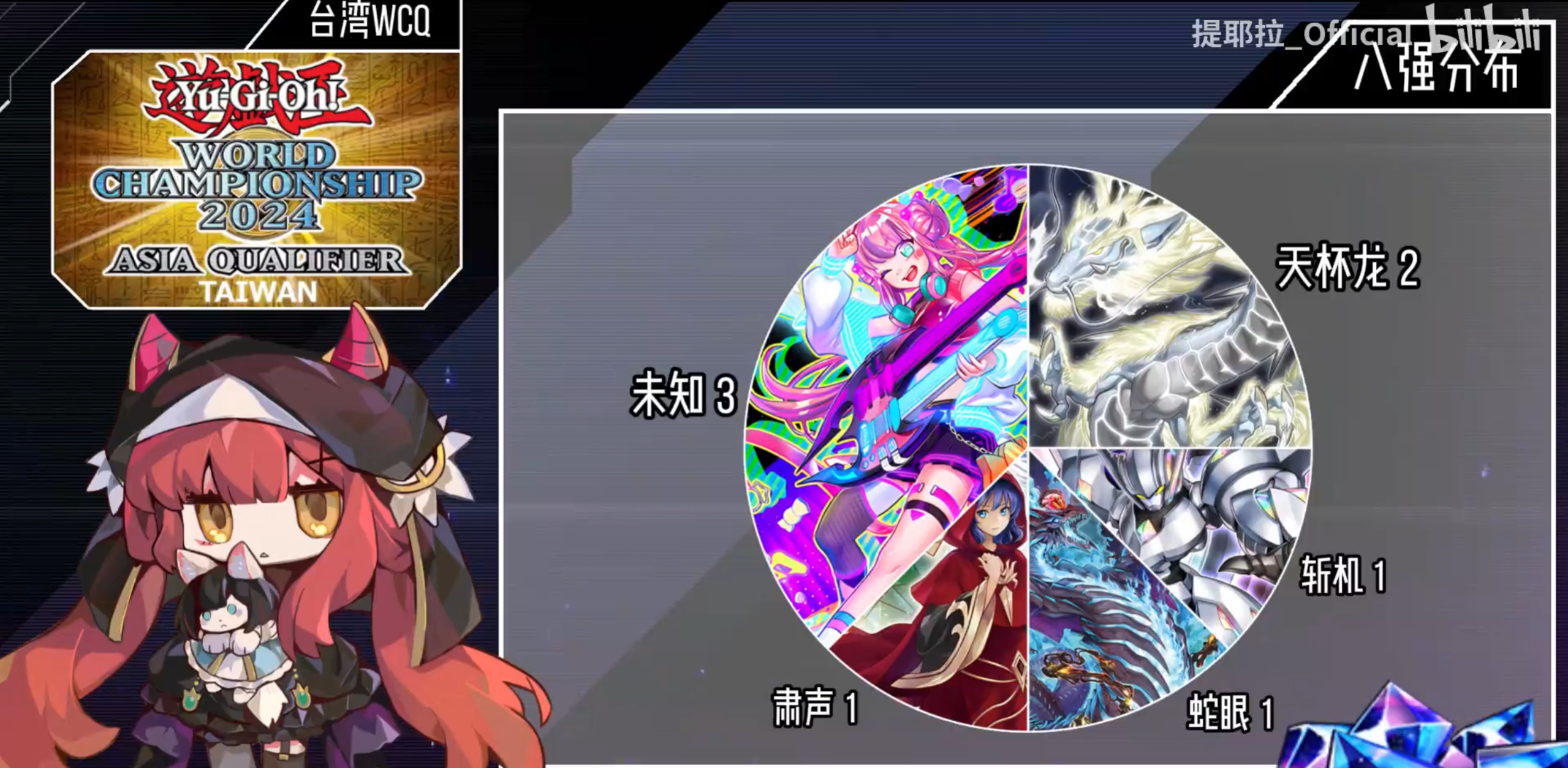 最后一场大赛,来自于六月一日的马来西亚wcq,有192位选手参加,本场大赛的前四强全部为刻魔蛇眼,剩余的四位出轮卡组为三位天杯加一位肃声。