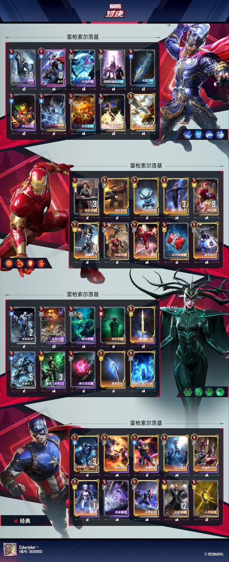 小洛基索尔是一套老卡组了,但是下限低。为了提高上限,有搭配蚁人链接的,有搭配毁灭博士的,但我要说的是他们通通不好用。为什么呢?因为无论蚁人还是博士,百分之95打不过秘闻蜘蛛!对,胜率就这么低!但是雷枪索尔吊着锤。只要四星加雷枪就是打全家!